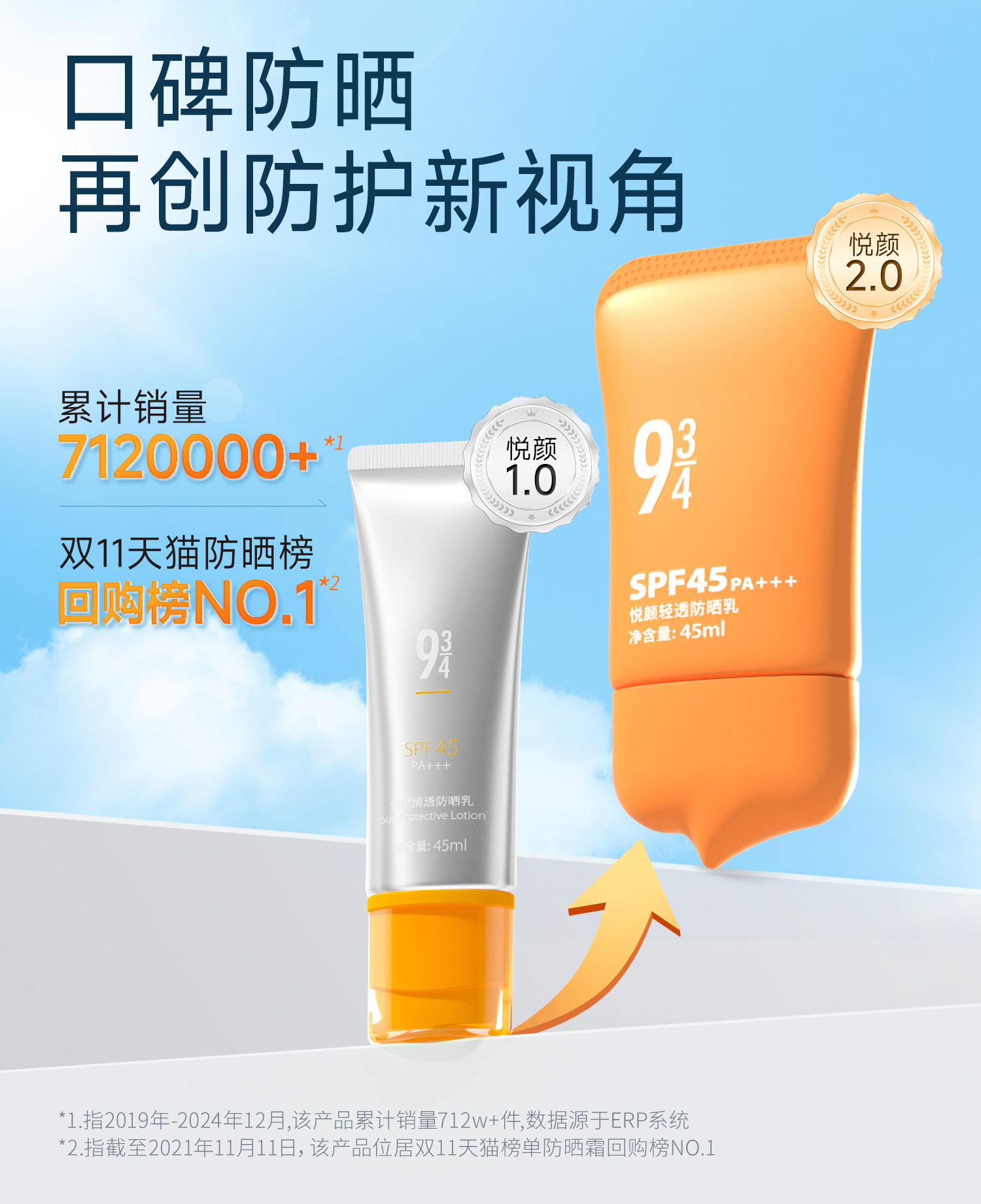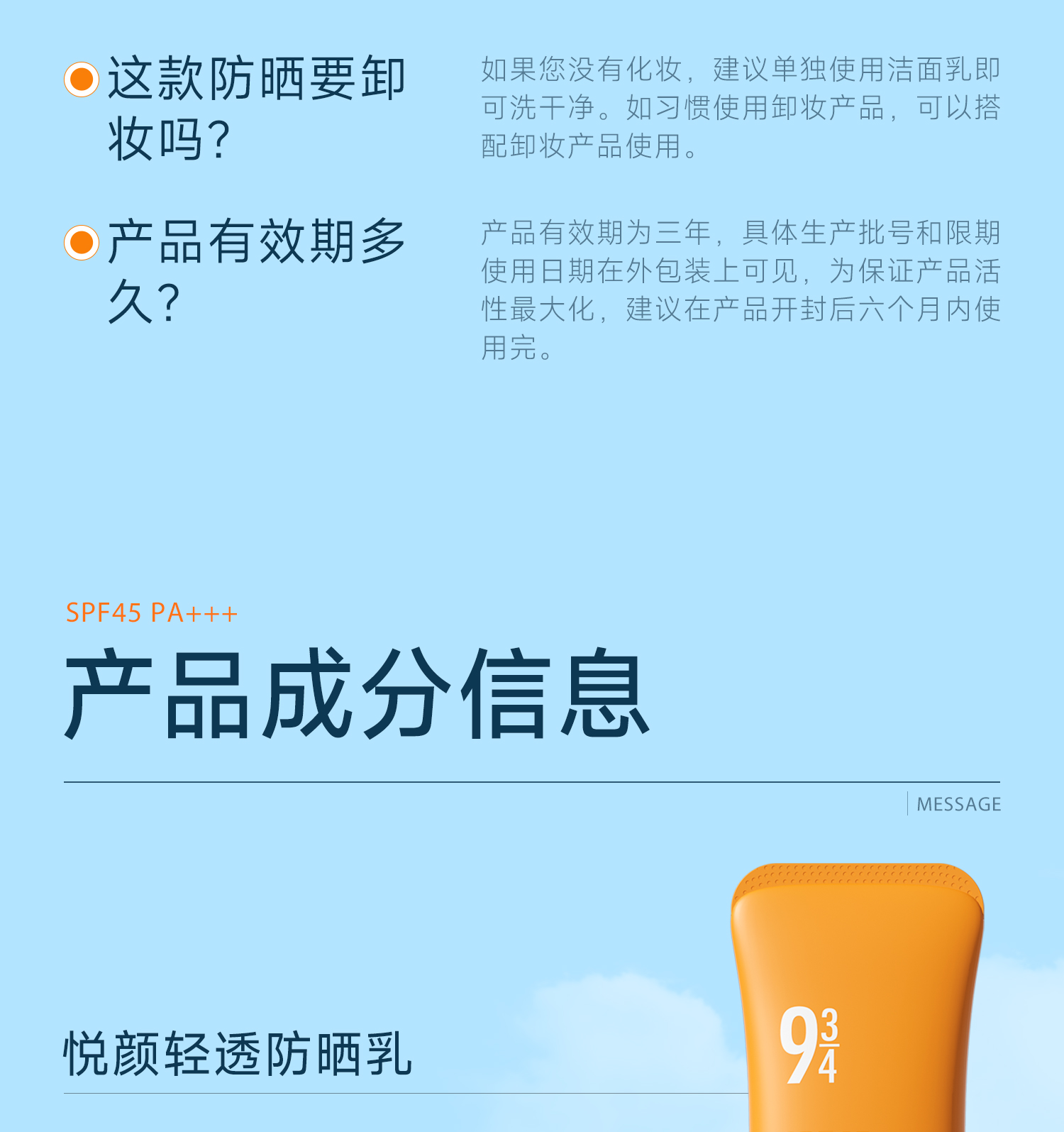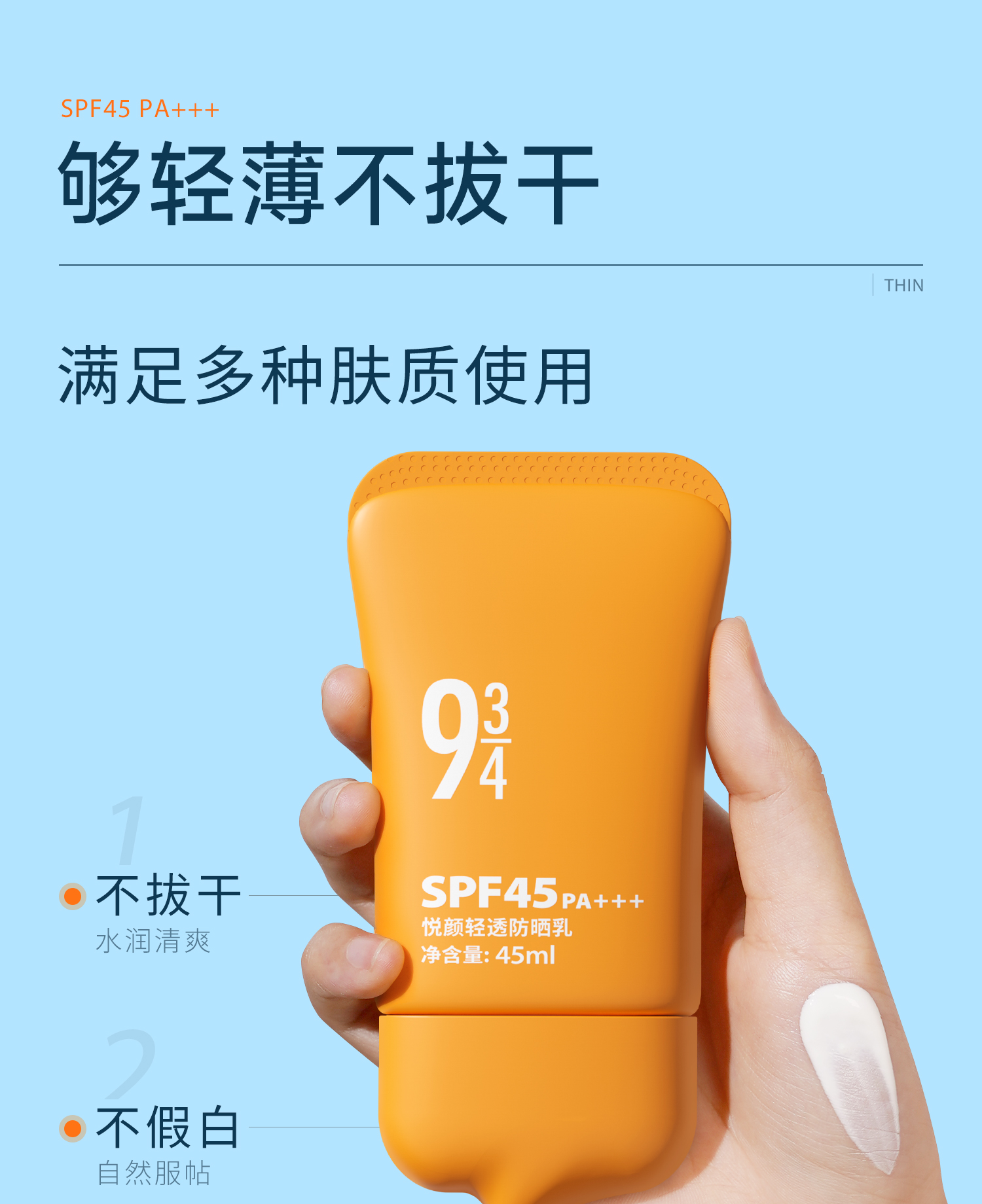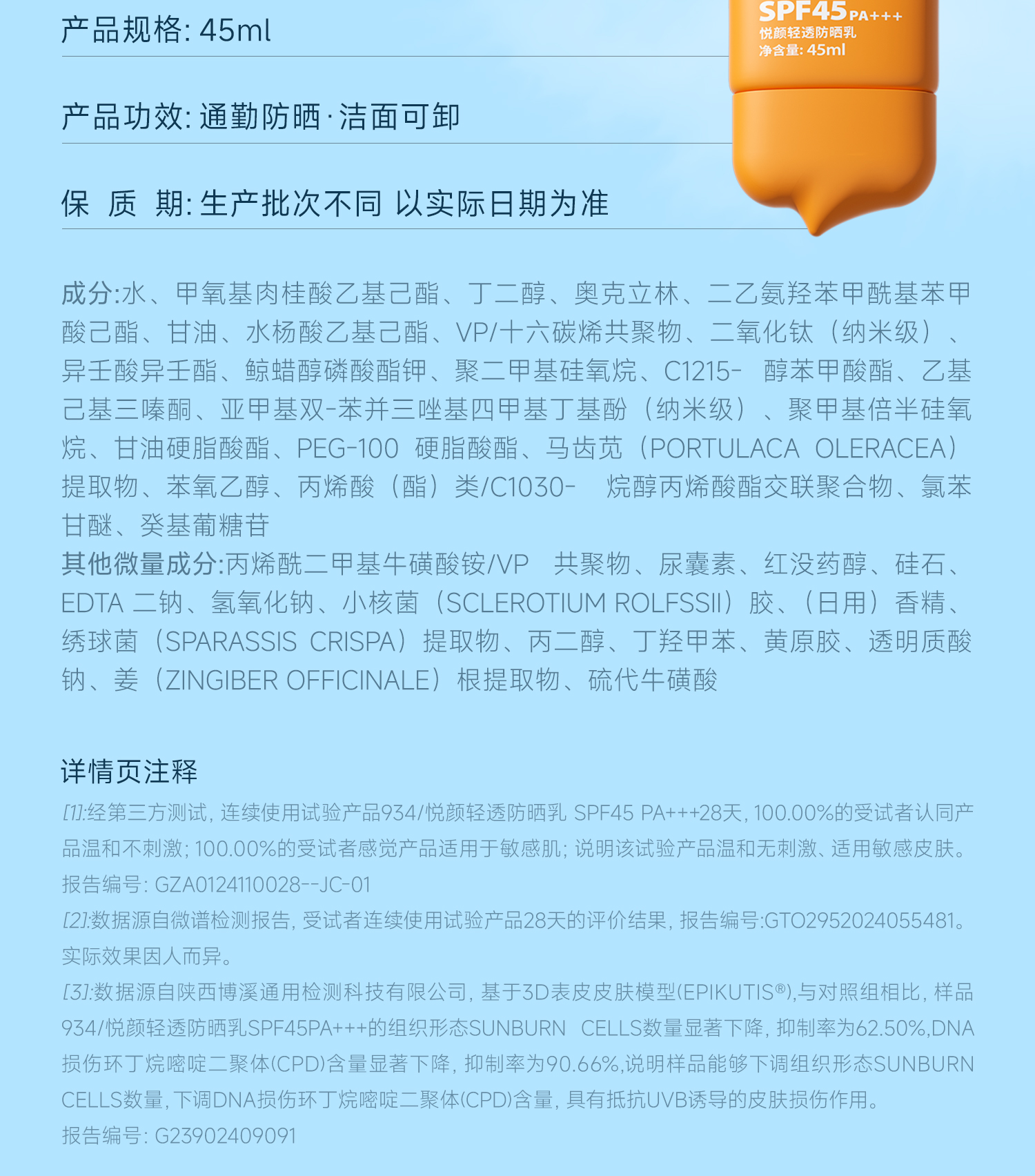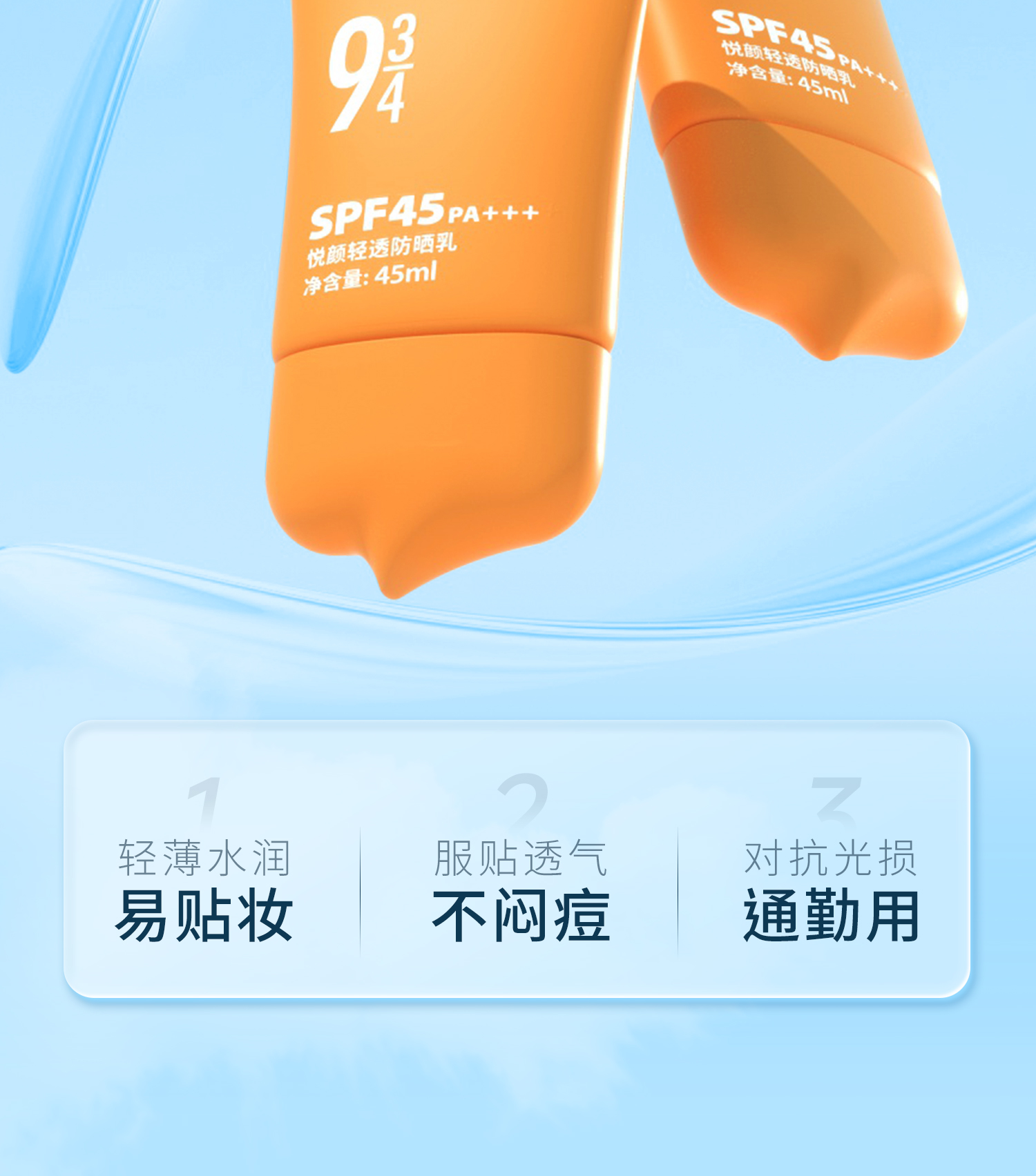 【943】悦颜清透防晒乳SPF45 PA+++