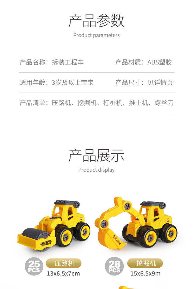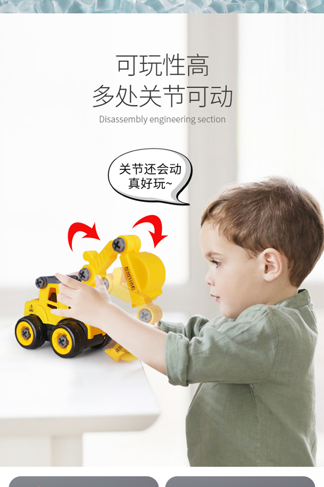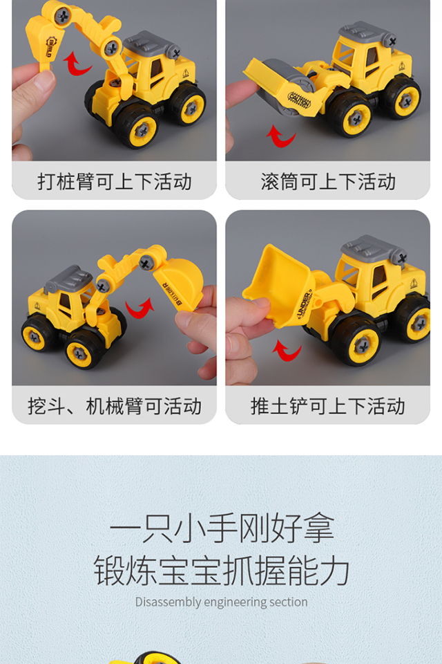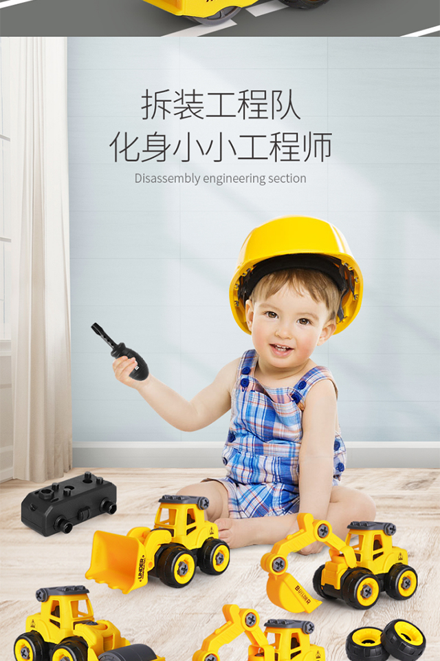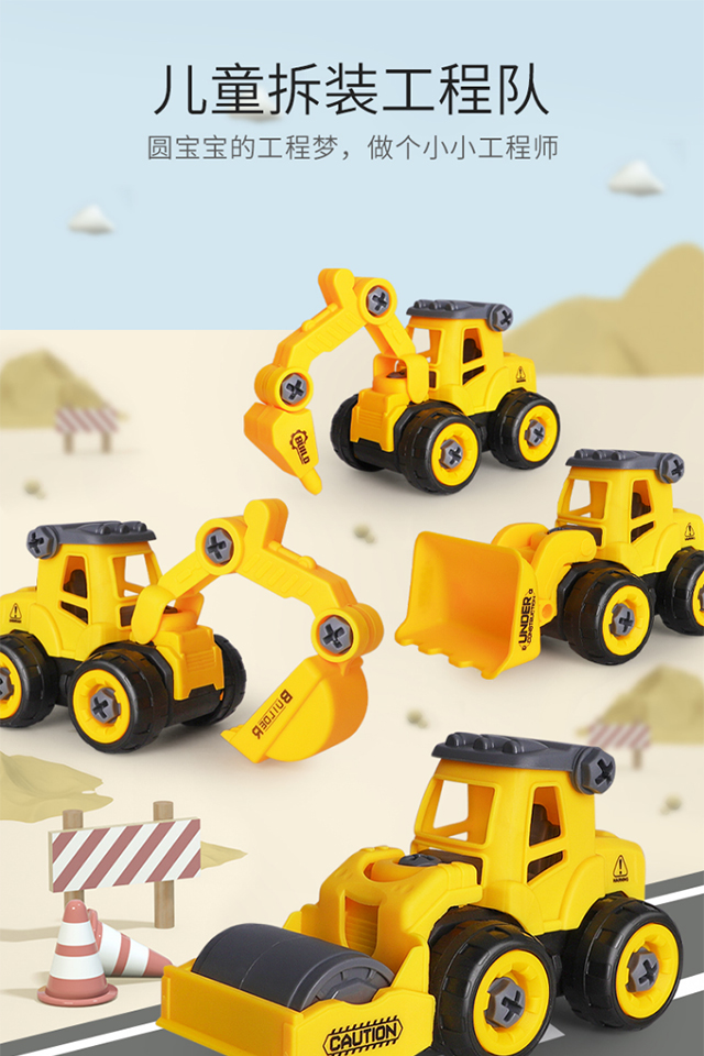 【4个装】拆装工程车儿童组装3岁6益智套装拼装男孩可拆卸消防车