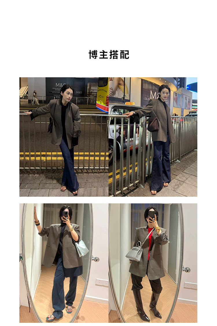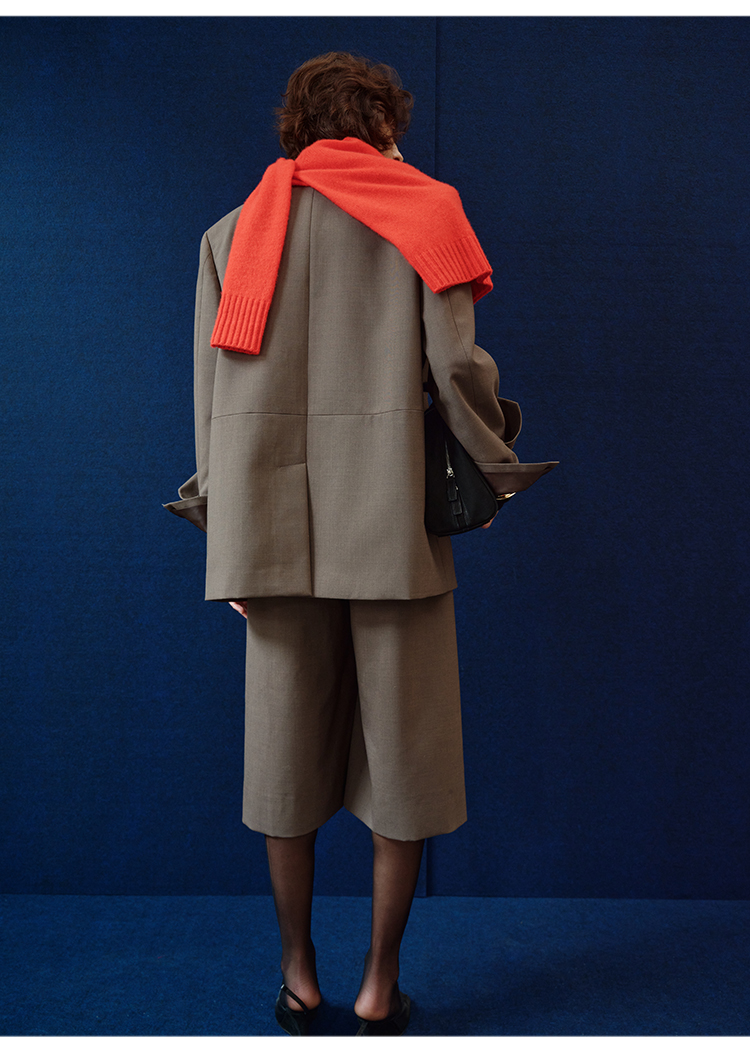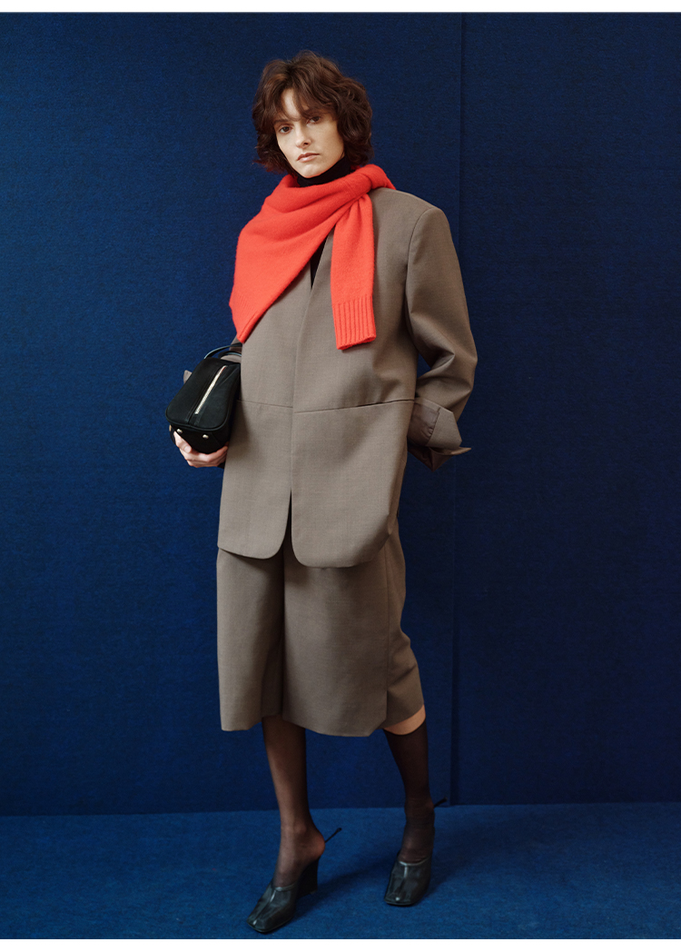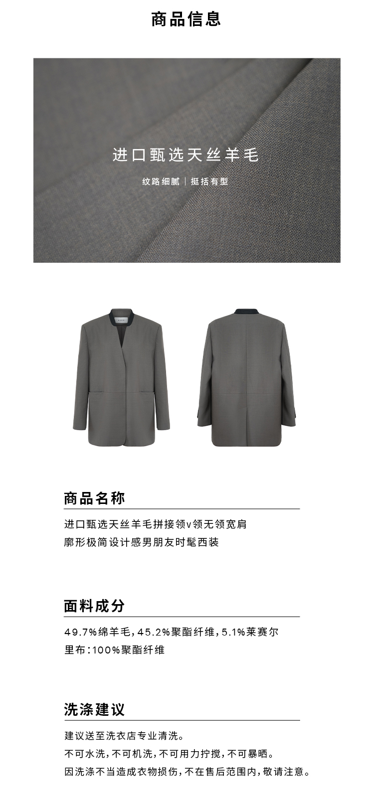 HIDEMI 进口甄选天丝羊毛拼接领v领无领宽肩廓形极简设计感男朋友时髦西装
