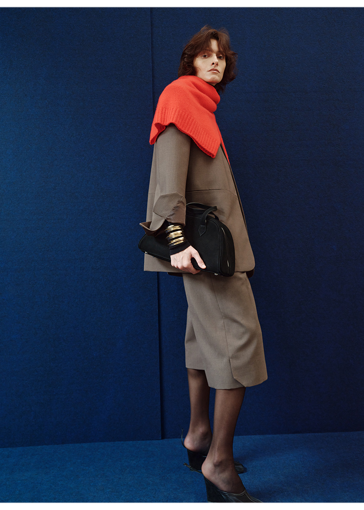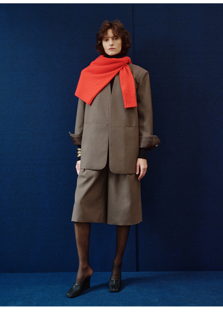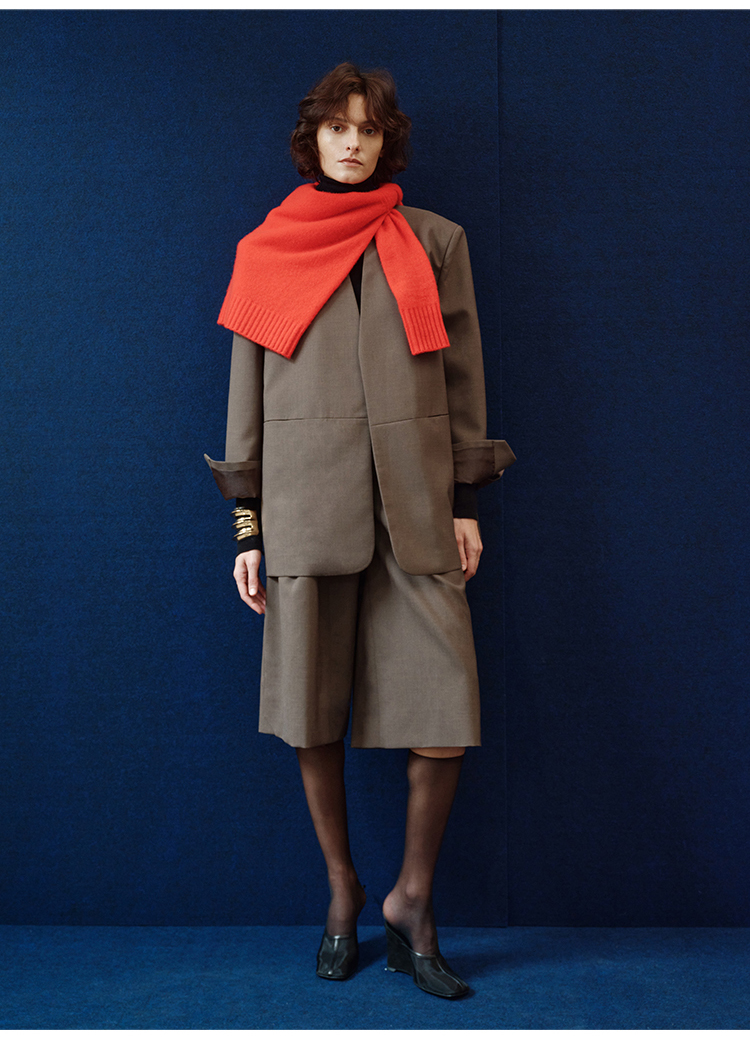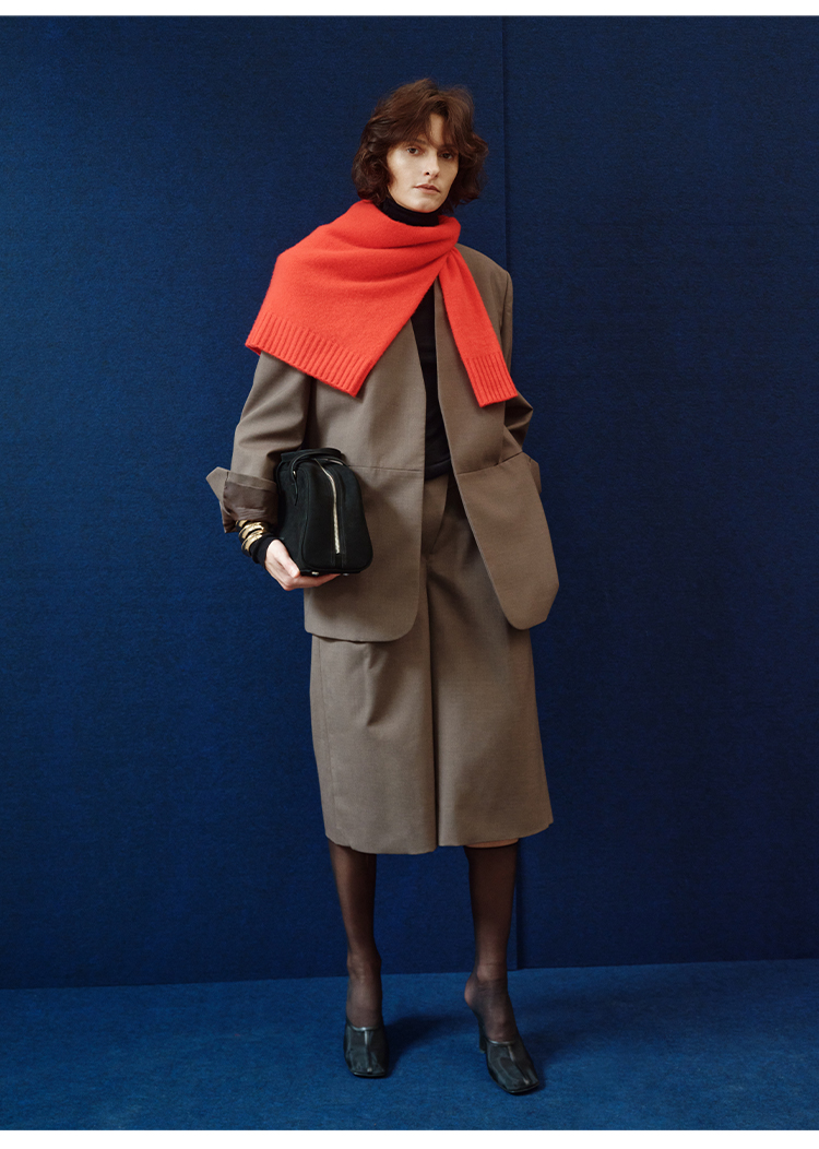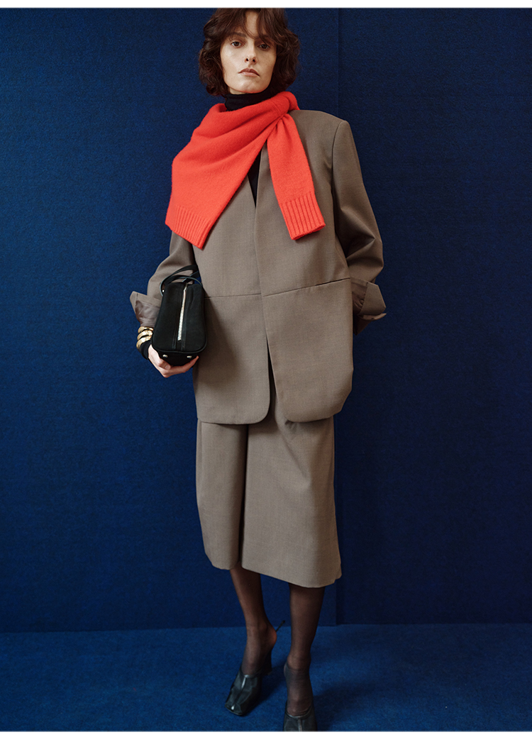HIDEMI 进口甄选天丝羊毛拼接领v领无领宽肩廓形极简设计感男朋友时髦西装