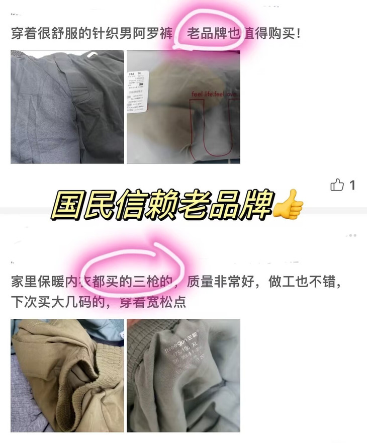 三枪诞生于1937年,已经有近百年的历史了! 一直深耕内衣领域 不忘初心,做好沉淀 专注于贴身衣服的舒适穿着体验 被评为中国针织行业最具竞争力品牌 也是我们父母老一辈最信赖的内衣品牌 贴身穿的衣物一定要卖牌子的 三枪质量把关方面真的不用担心!
