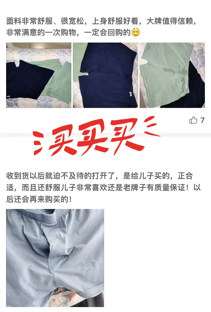 官方日常在售299/3条 夏日粉丝福利价巨划算! 一条=内裤+运动裤+休闲裤!一裤多穿! 赶紧给老公、爸爸们囤起来!