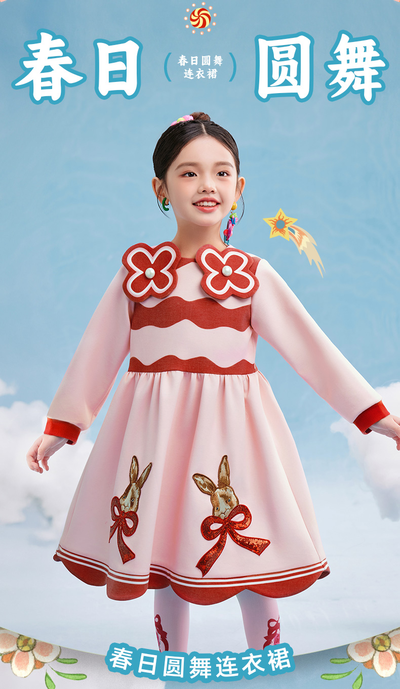 年衣童装女童连衣裙2025年春款女孩宝宝A字裙儿童云肩甜美公主裙子春日圆舞连衣裙