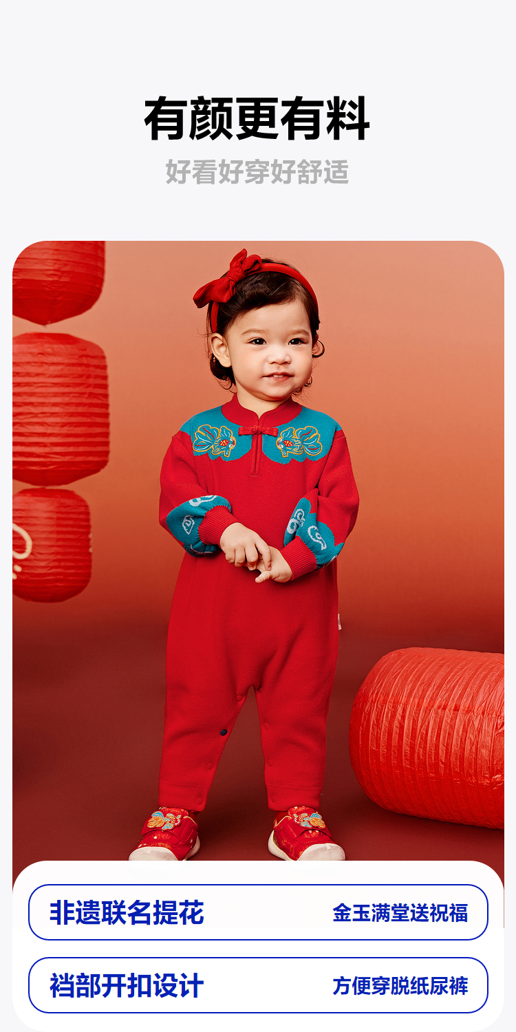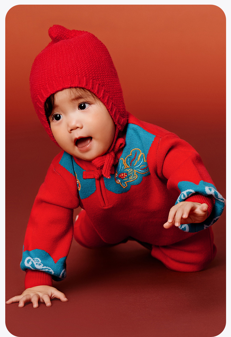 【非遗联名】迷你巴拉连体衣男女童柔软保暖国风毛织拜年服