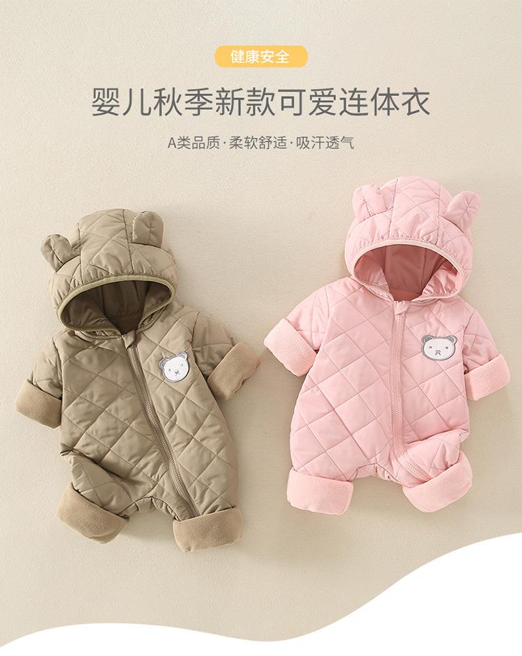 秋冬婴儿夹棉连体衣新生儿衣服宝宝哈衣棉服加厚保暖衣外出服爬服