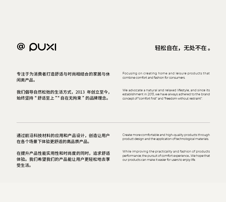 - 浙江朴西集团成立于2013年,是一家集研发设计生产销售服务为一体的复合型集团。朴西多年来坚持自主延发设计,并不断融合科技创新,致力于让更多人穿上舒适拖鞋,享受家庭幸福感。
