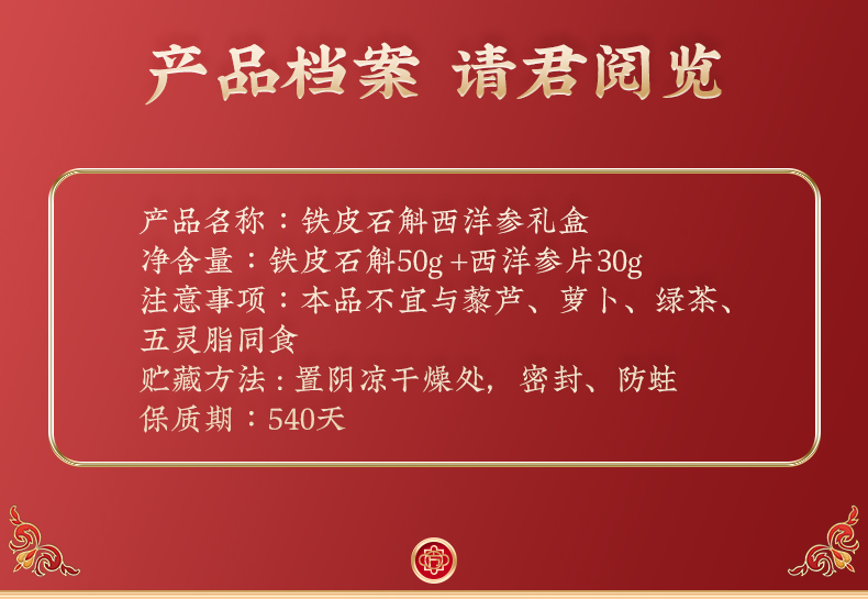 西洋参切片铁皮石斛礼盒80g(西洋参片30g+雁荡山石斛50g)