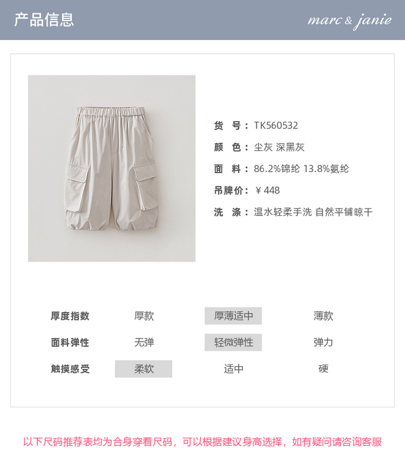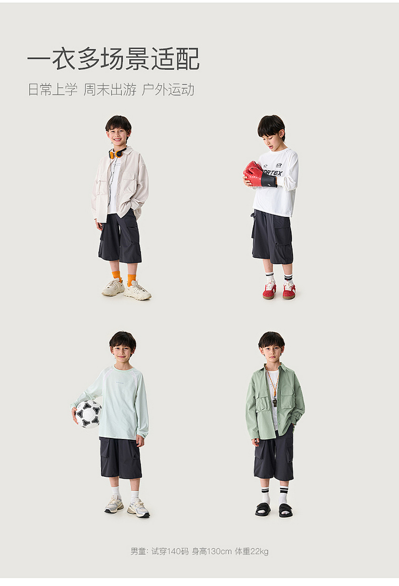 马克珍妮城市轻户外男童速干七分裤2026年夏装新款560532