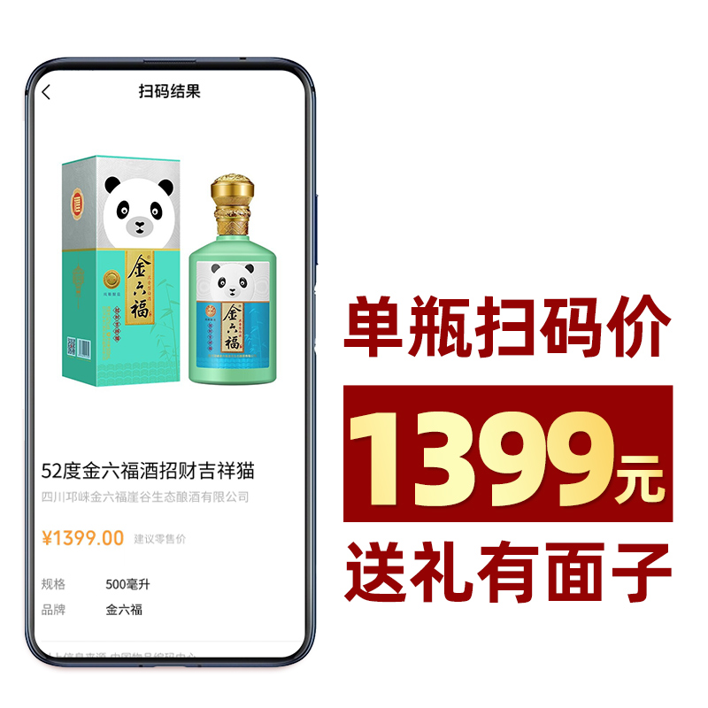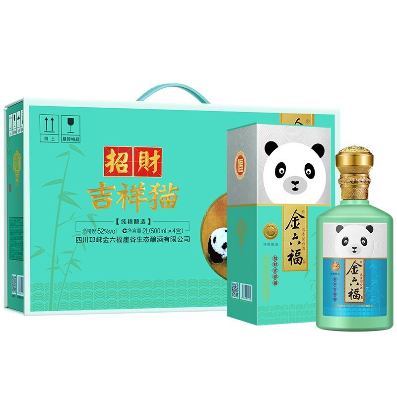 金六福 招财吉祥猫 浓香型白酒 52度 粮食坤沙高度酒送礼自饮 500ml*4盒