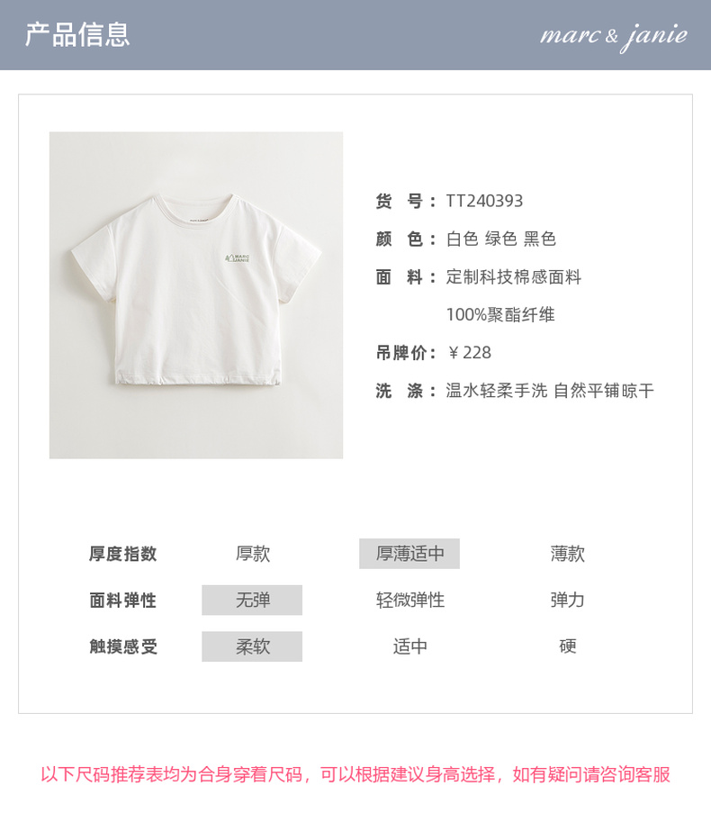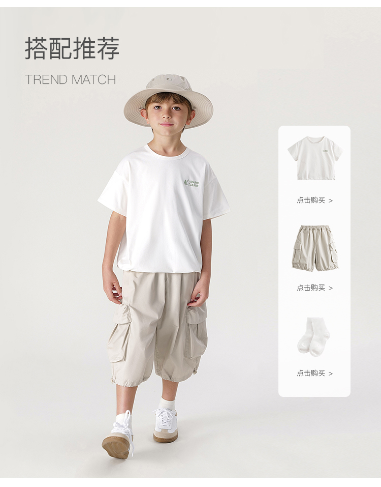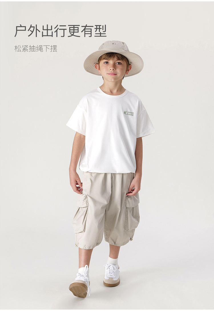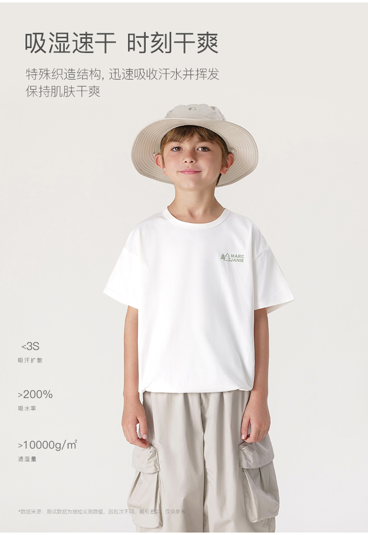 [棉感速干]马克珍妮男童字母抽绳下摆速干短袖T恤夏装新款240393