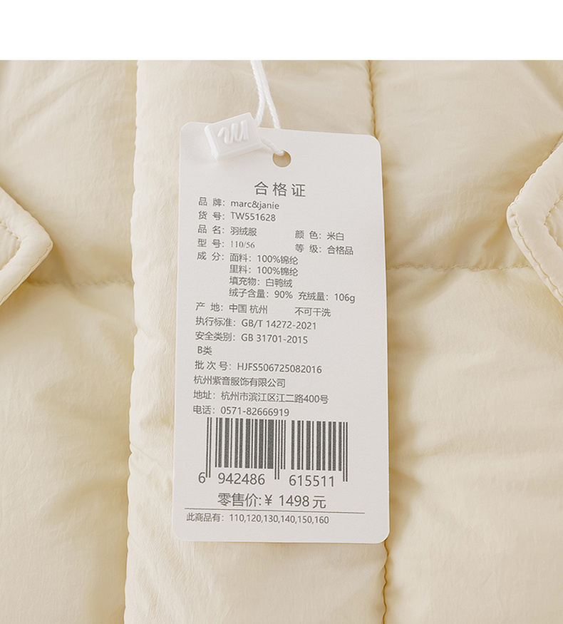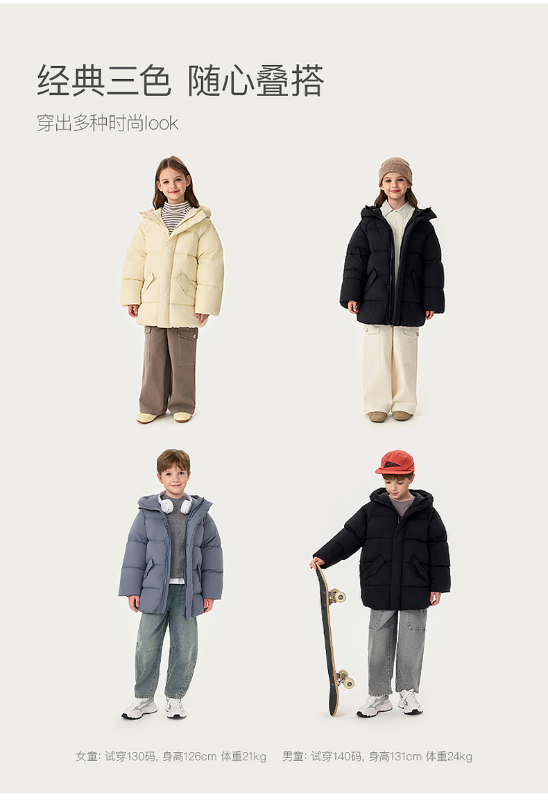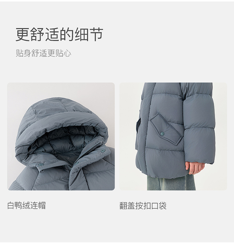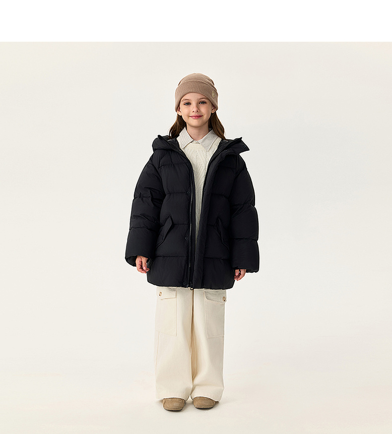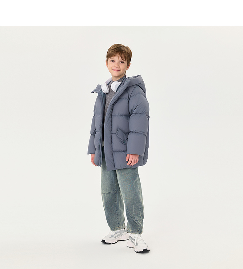 【无氟防泼水】马克珍妮男童保暖加厚中长款连帽羽绒服2025年冬装新款551628