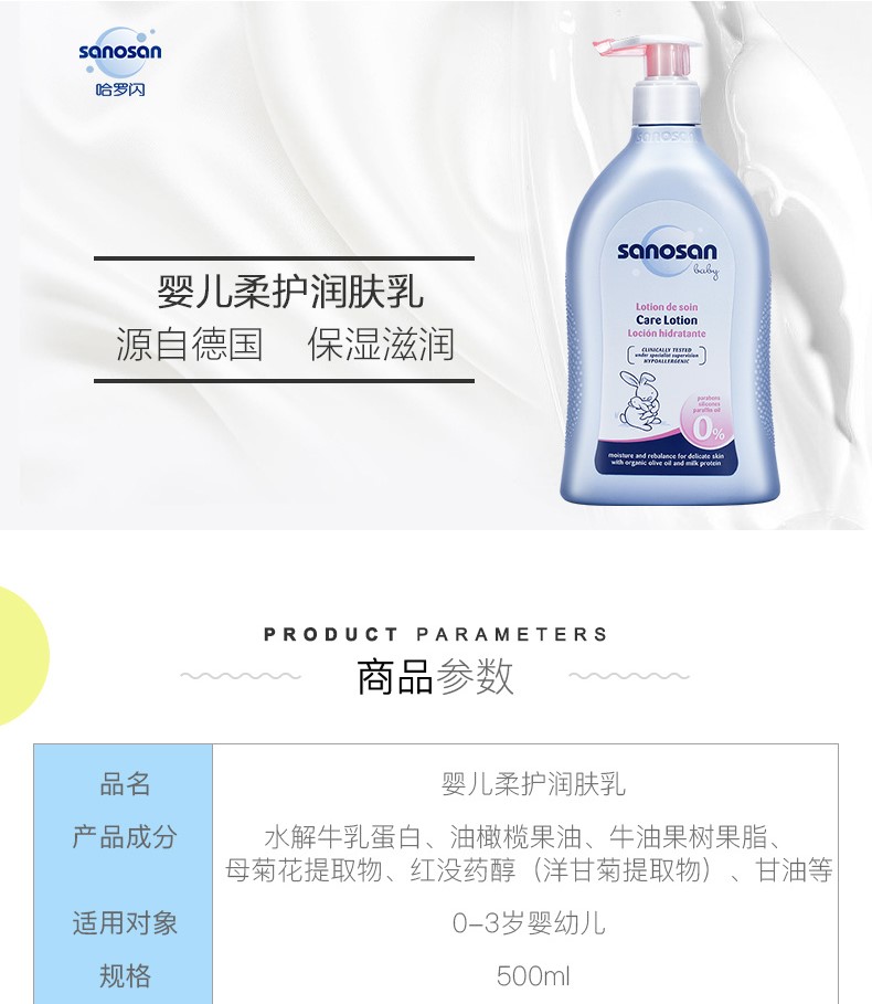 dx 哈罗闪婴儿柔护润肤乳 温和无刺激保湿滋润护肤霜宝宝身体乳 500ml