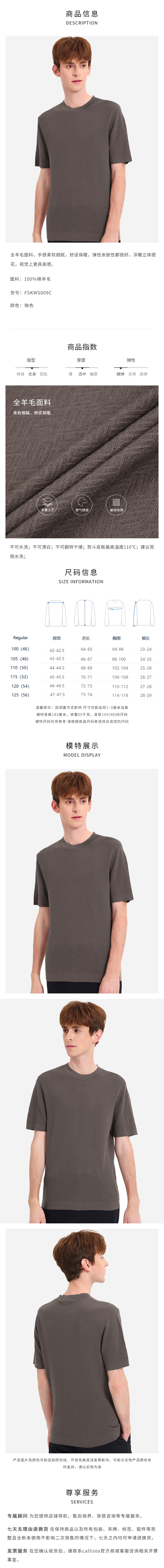 callisto松果褐全绵羊毛短袖针织衫 FSKWS009C BR