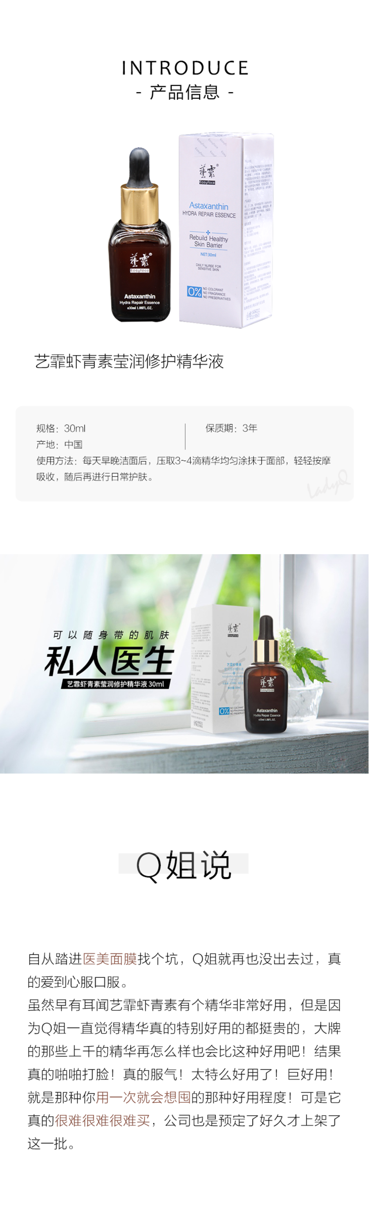升级版!空瓶无数!艺霏虾青素莹润修护精华液30ml(28.5)