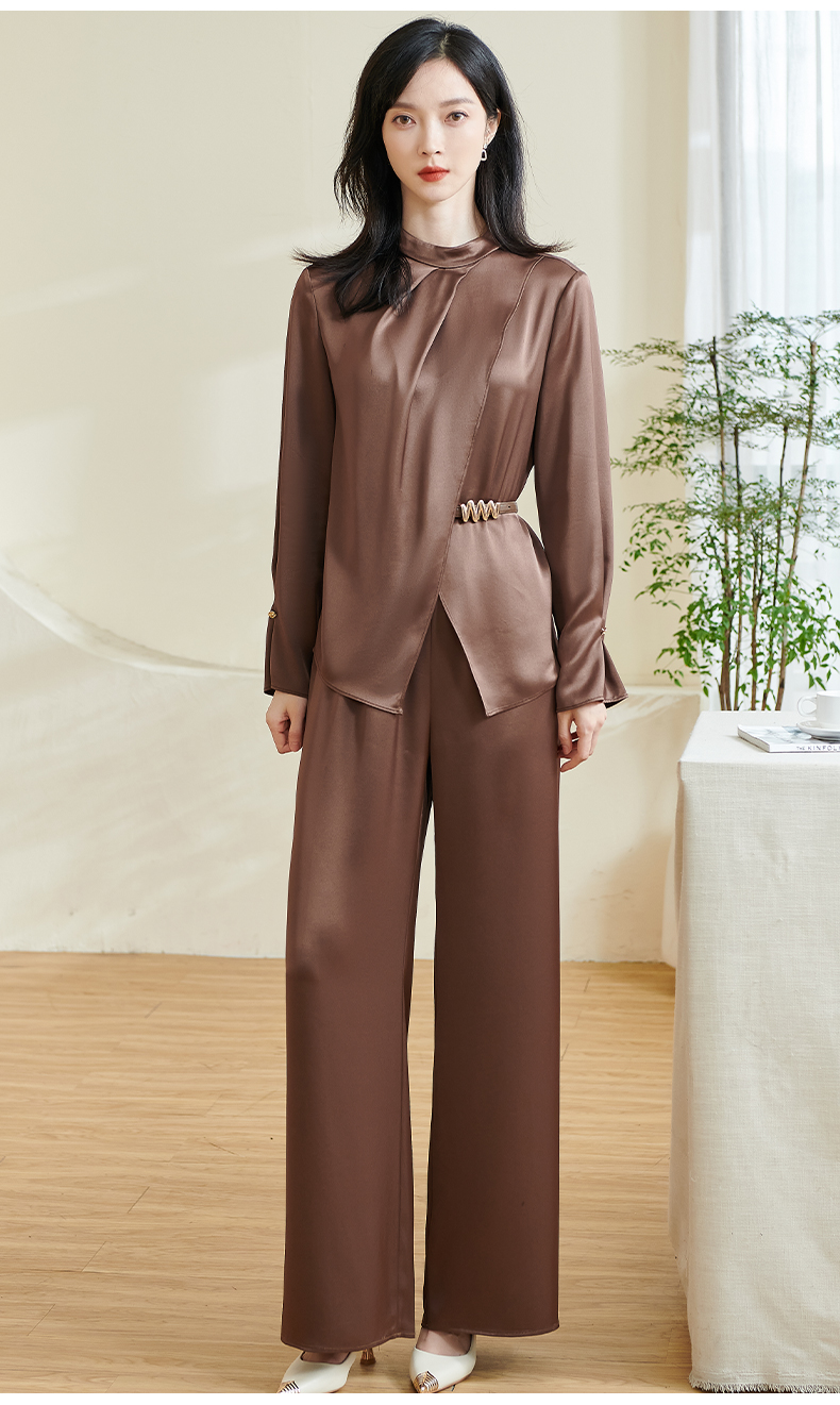 米思阳2026春季新款气质爽滑醋酸休闲裤宽松垂感直筒长裤女0518