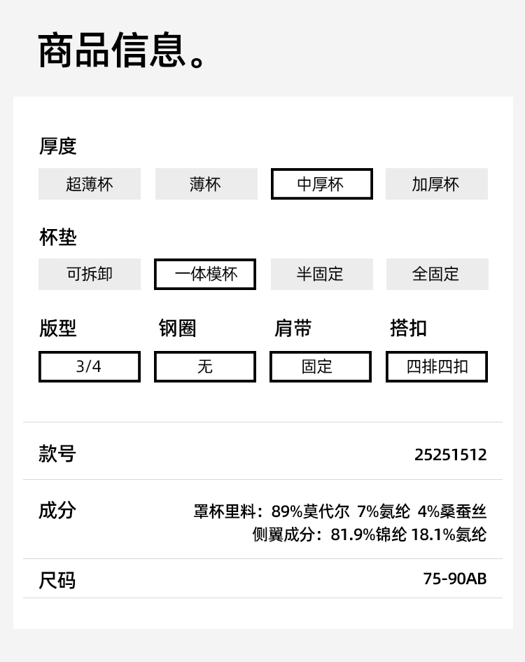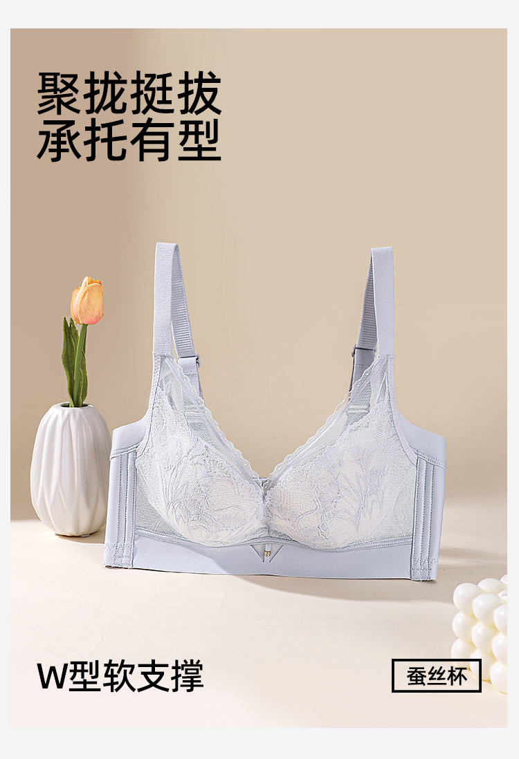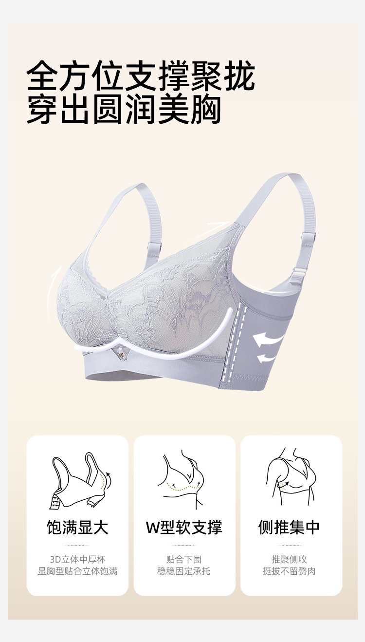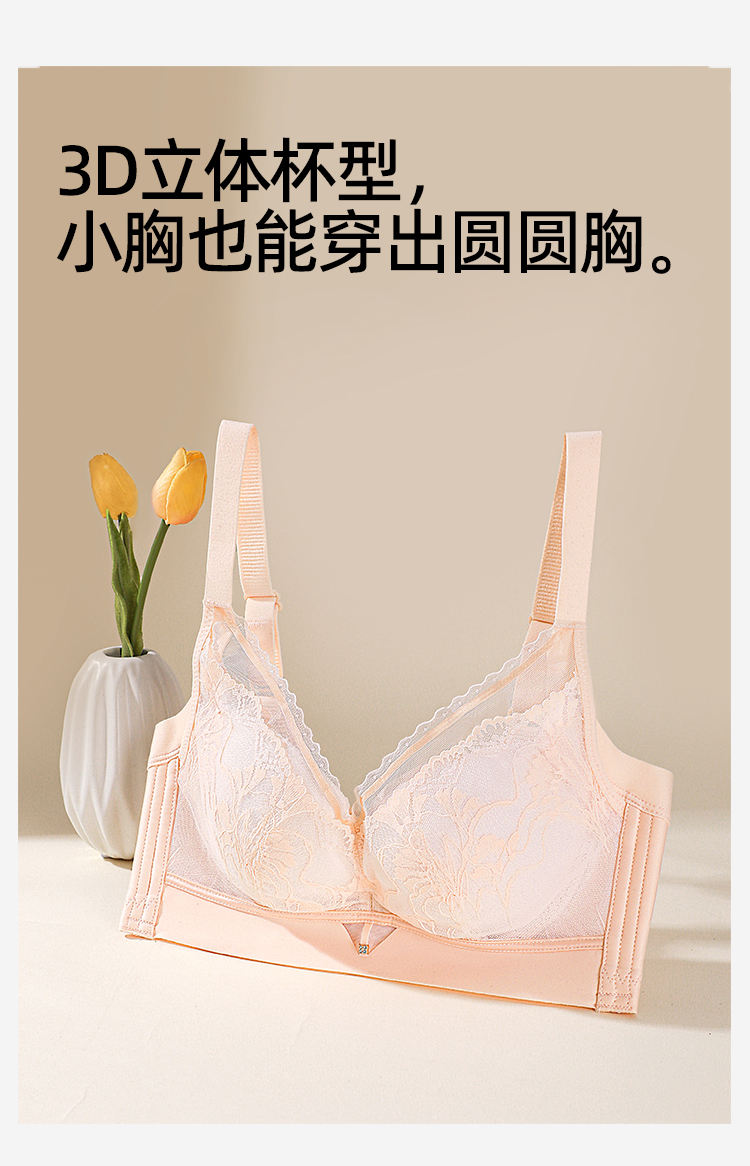 【强聚拢】熳洁儿 小胸聚拢中厚杯蕾丝蚕丝滑滑杯文胸25251512