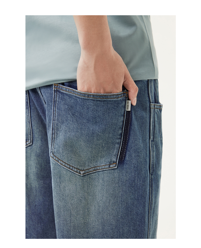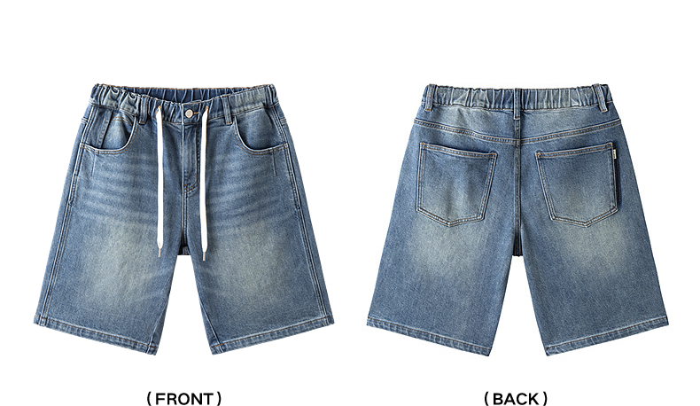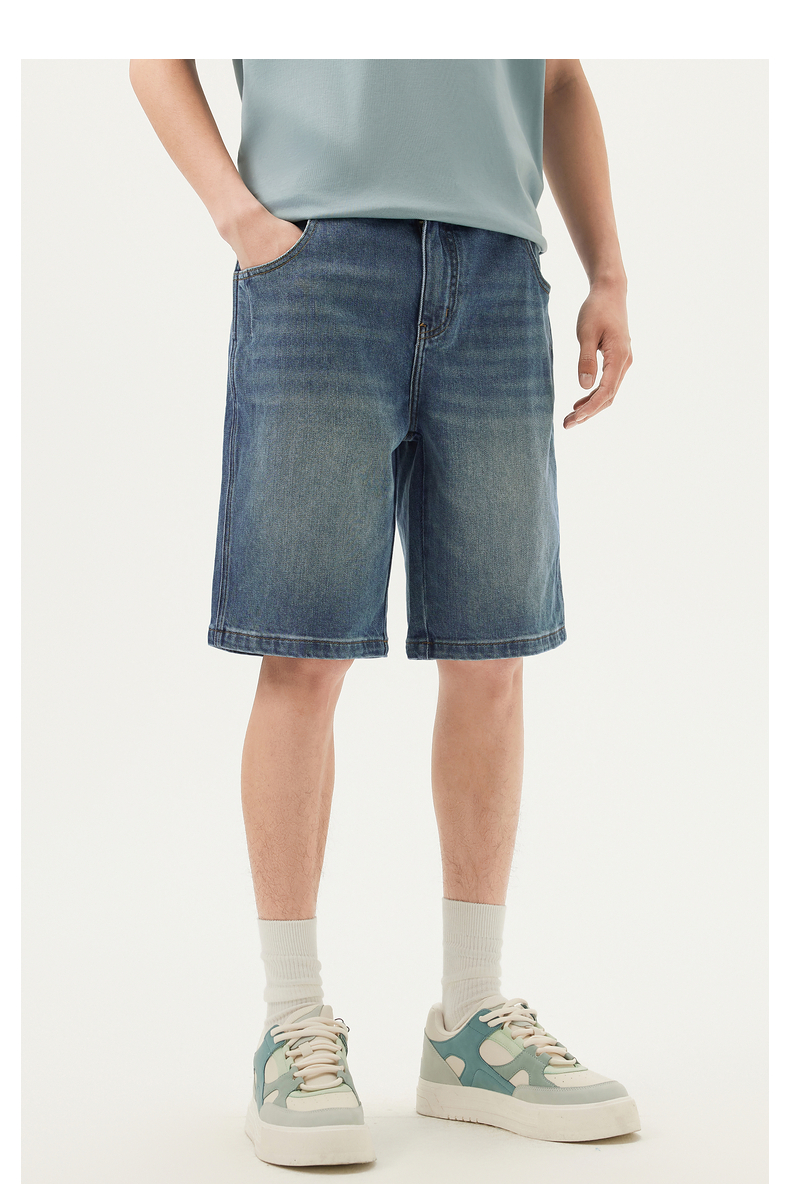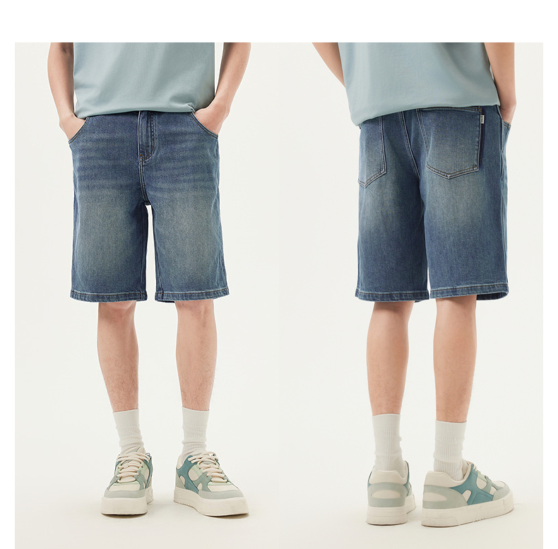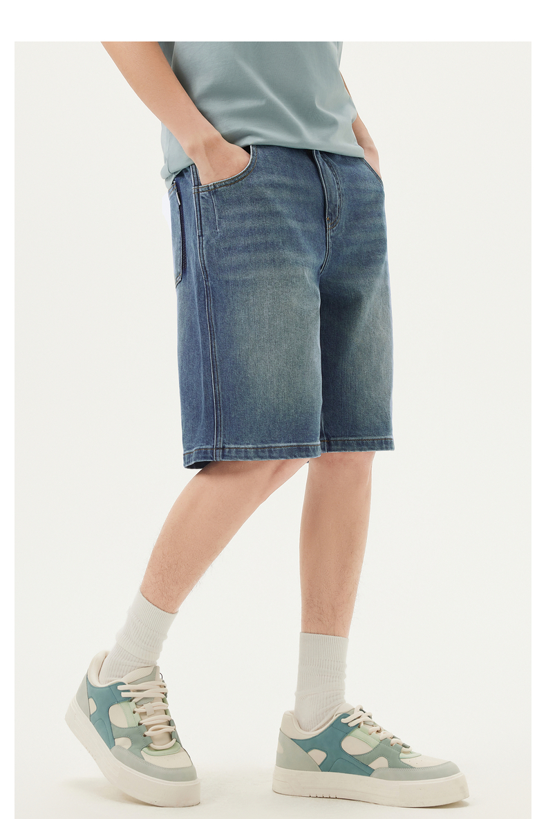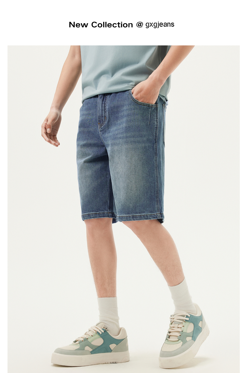 gxg.jeans男装 蓝色水洗裤腰抽绳宽松直筒休闲牛仔短裤 25夏热卖