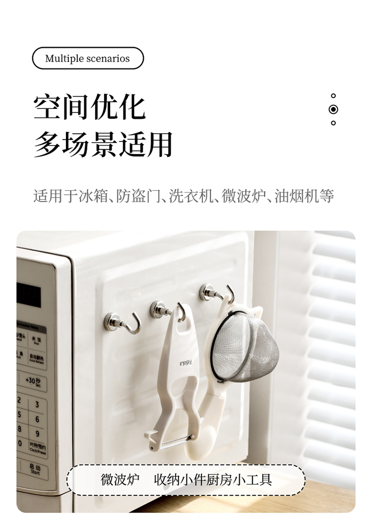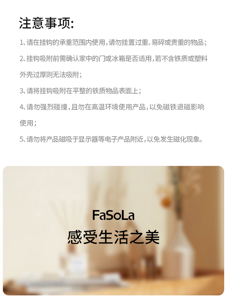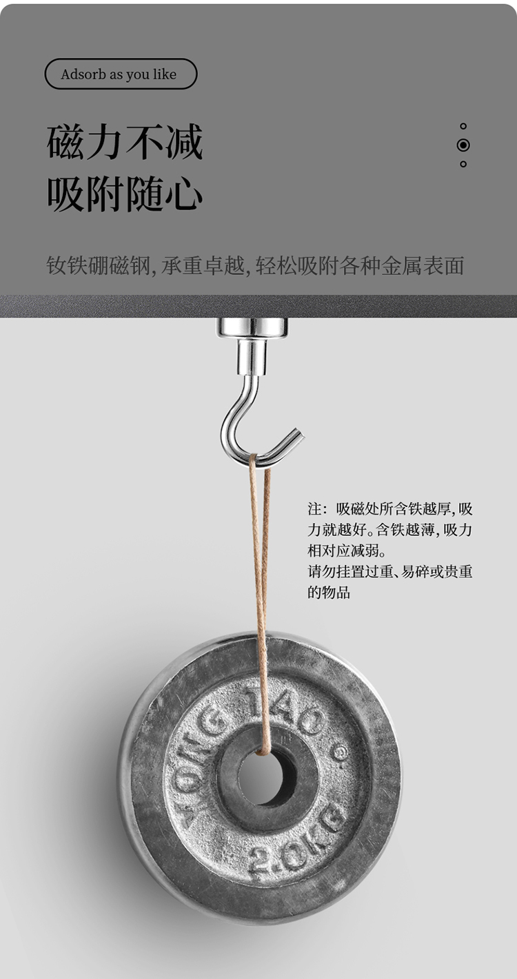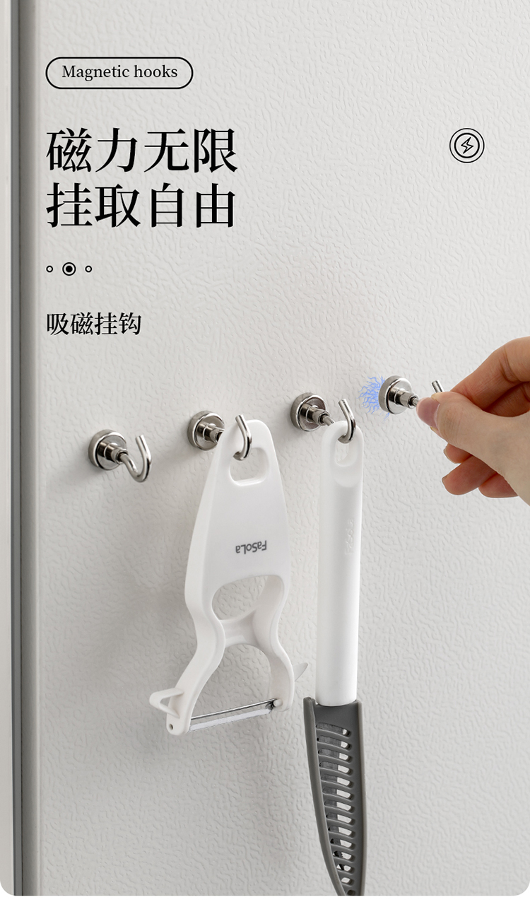 Fasola磁吸挂钩免打孔无痕冰箱入户门后钥匙钩可旋转强力磁铁粘钩