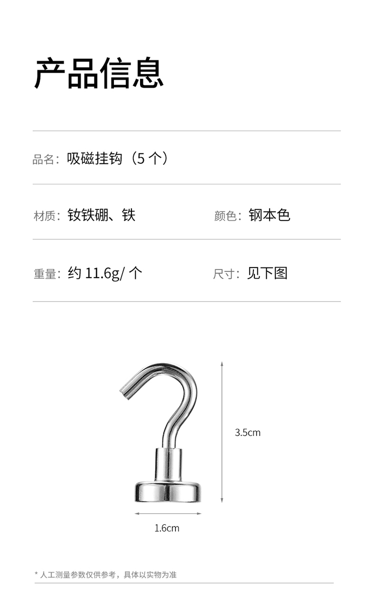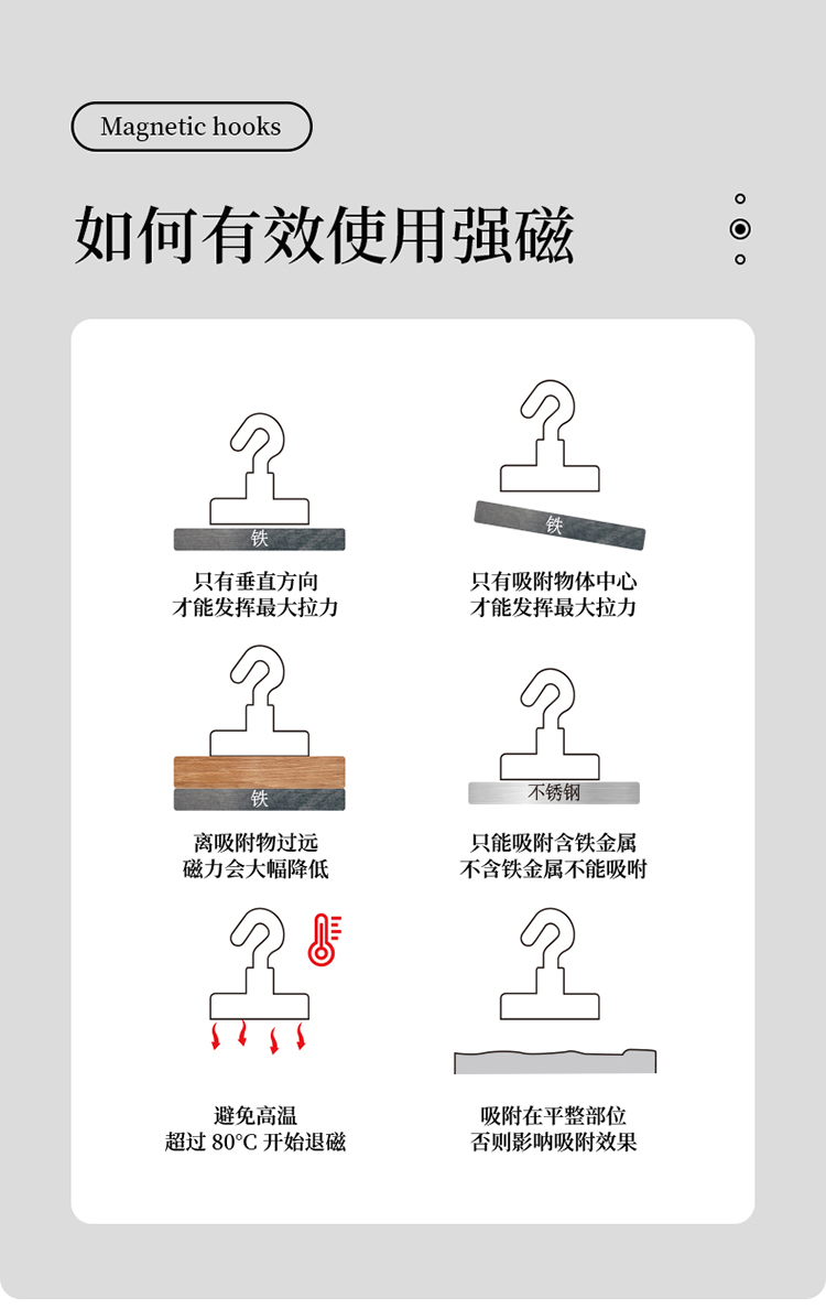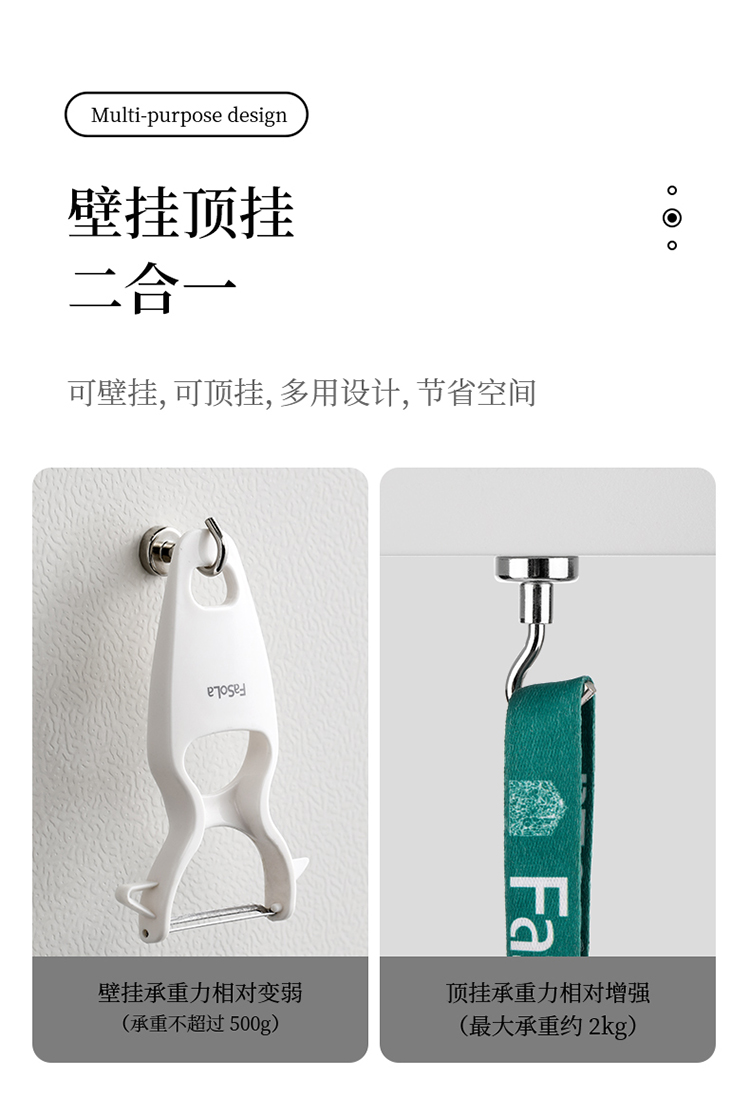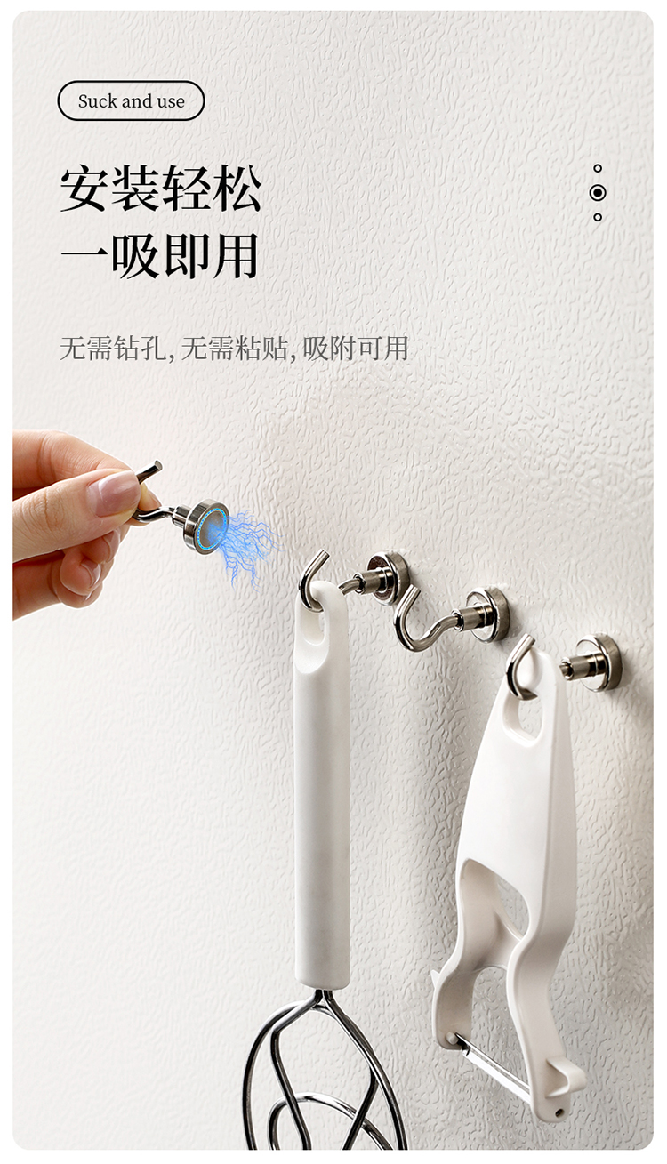 Fasola磁吸挂钩免打孔无痕冰箱入户门后钥匙钩可旋转强力磁铁粘钩