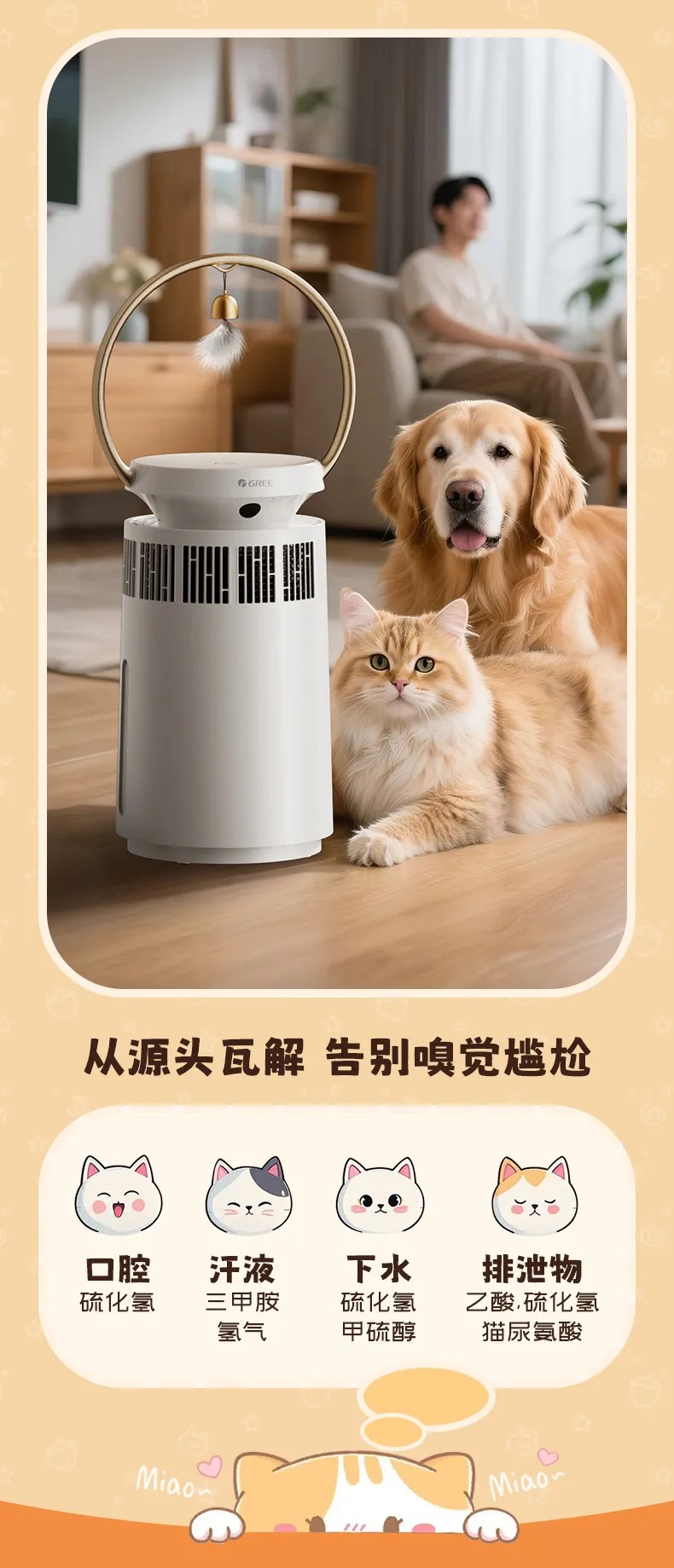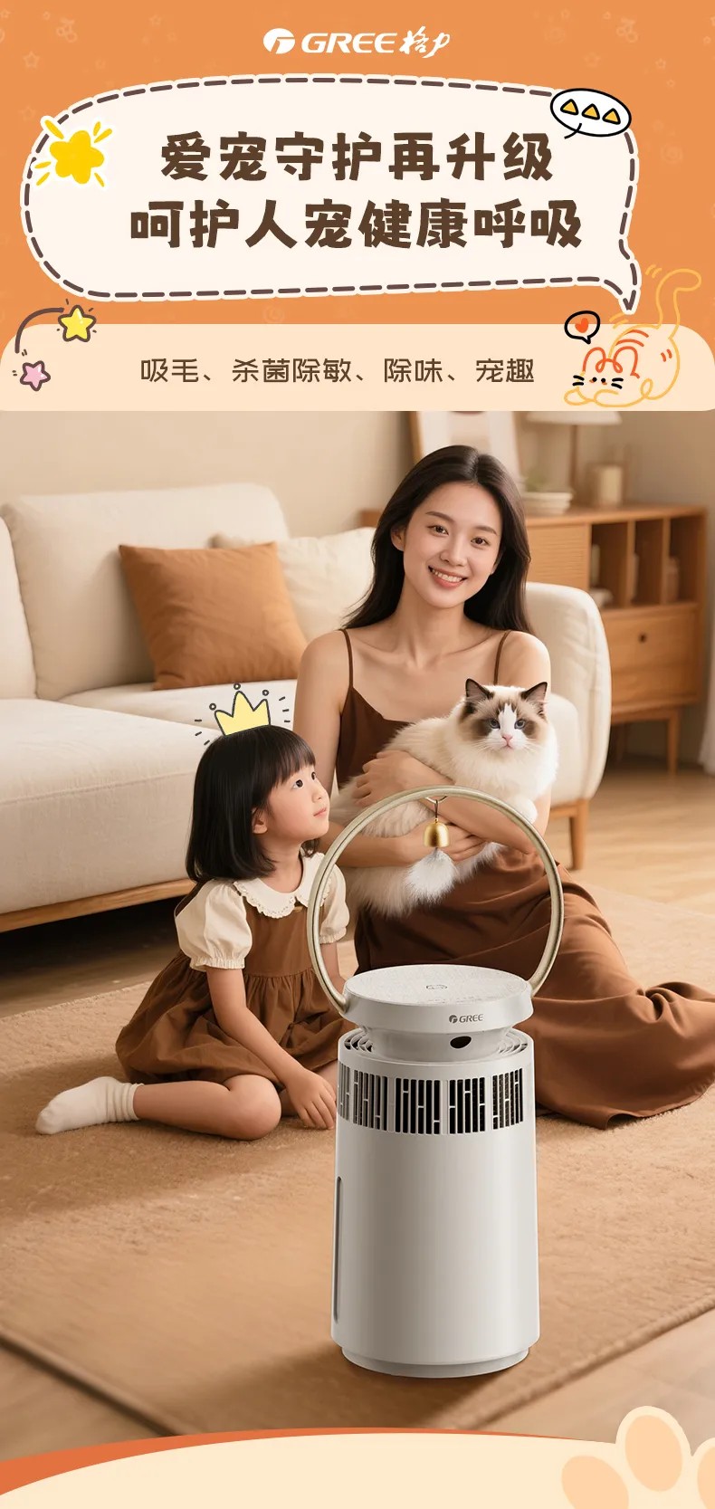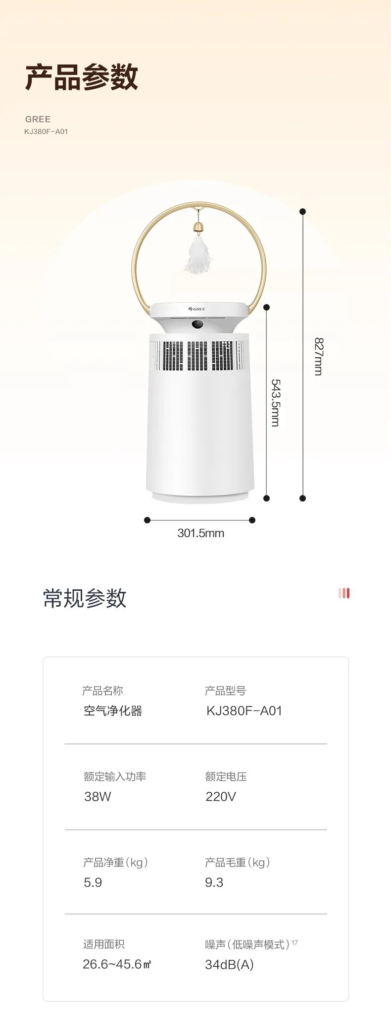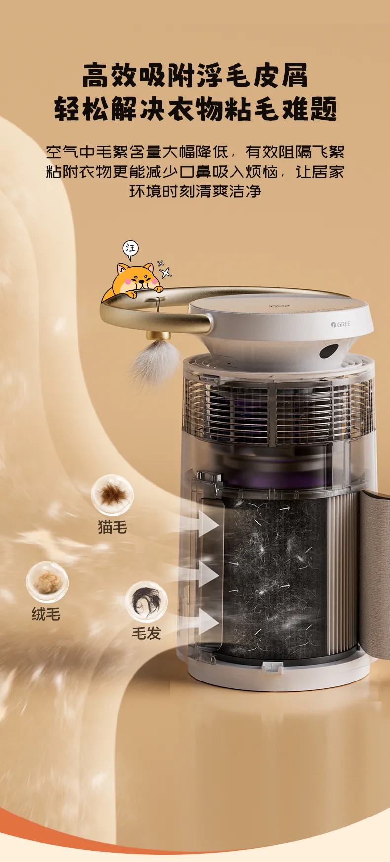 格力宠物净化器 专业宠物净化 高效祛味除菌 KJ380F-A01 白色
