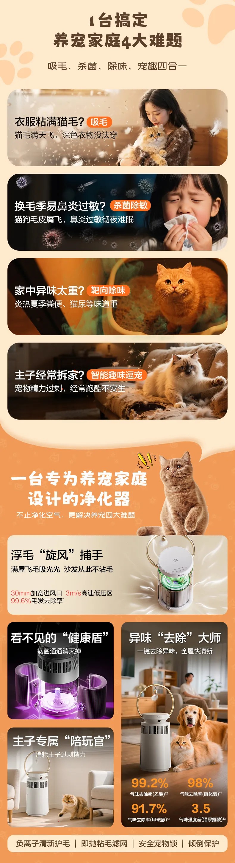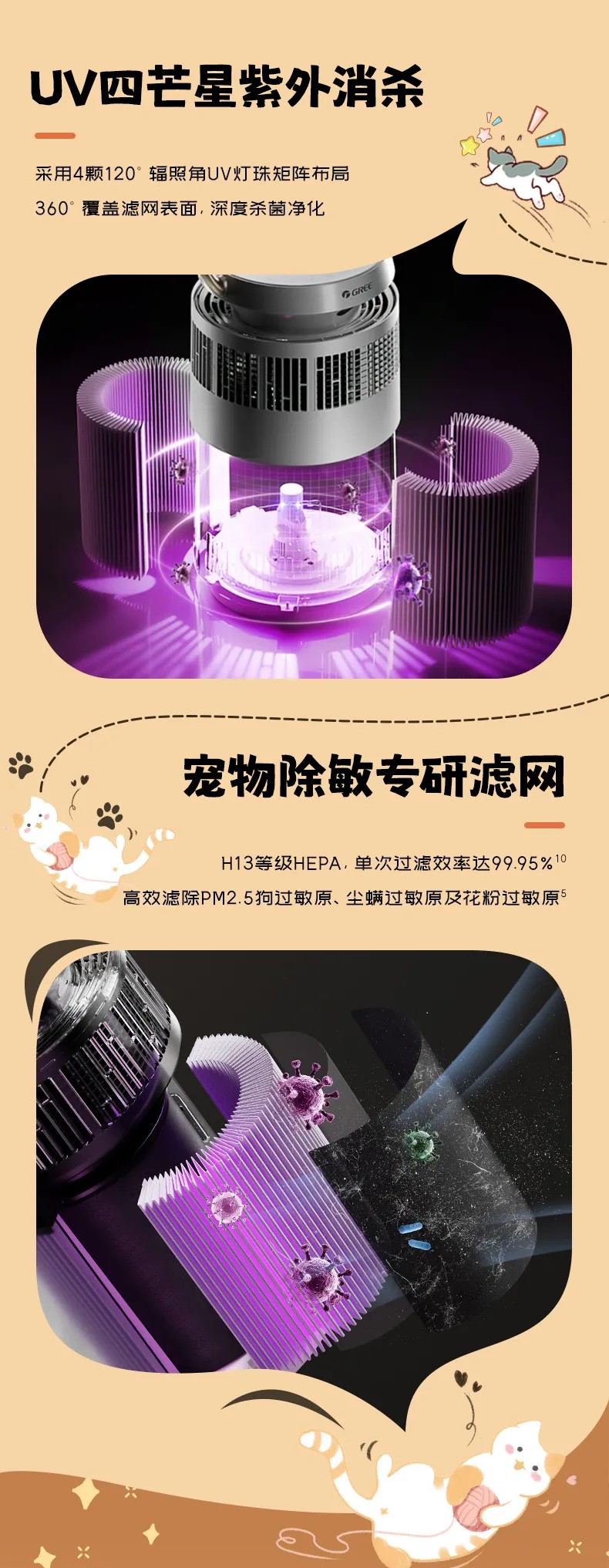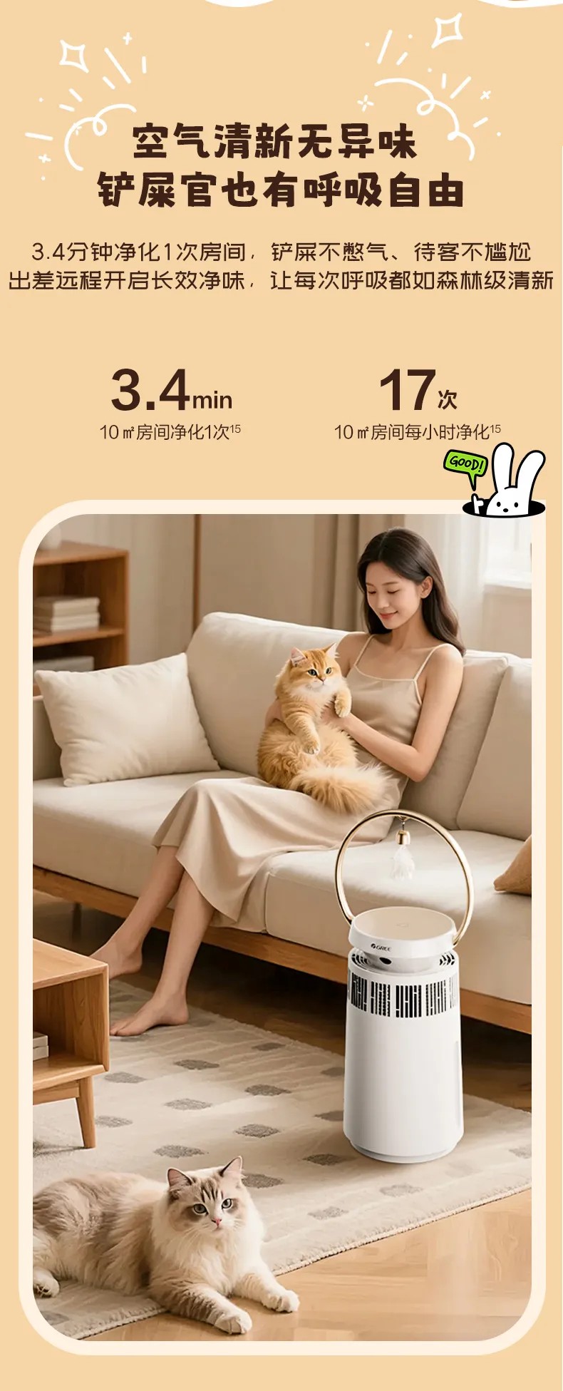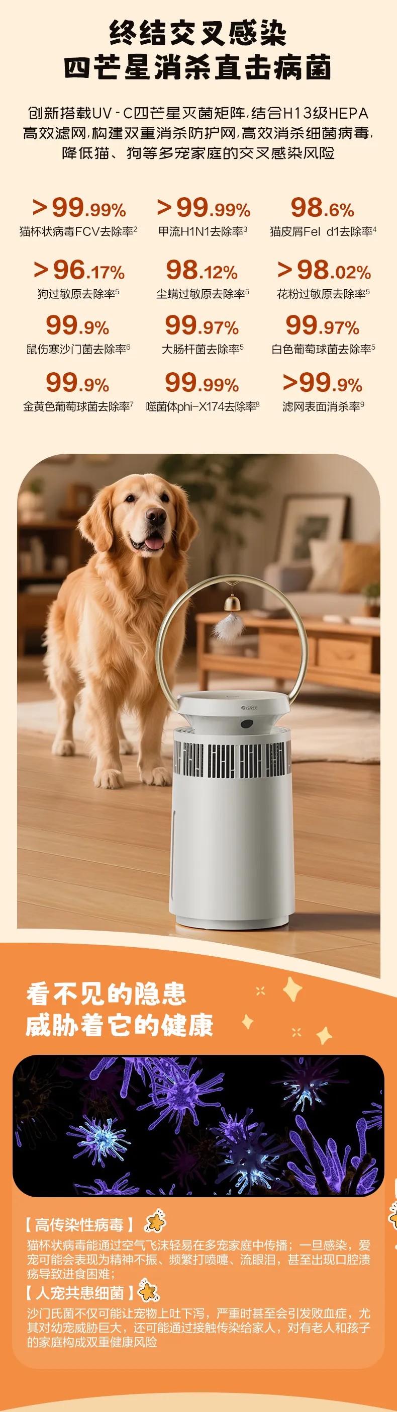 格力宠物净化器 专业宠物净化 高效祛味除菌 KJ380F-A01 白色