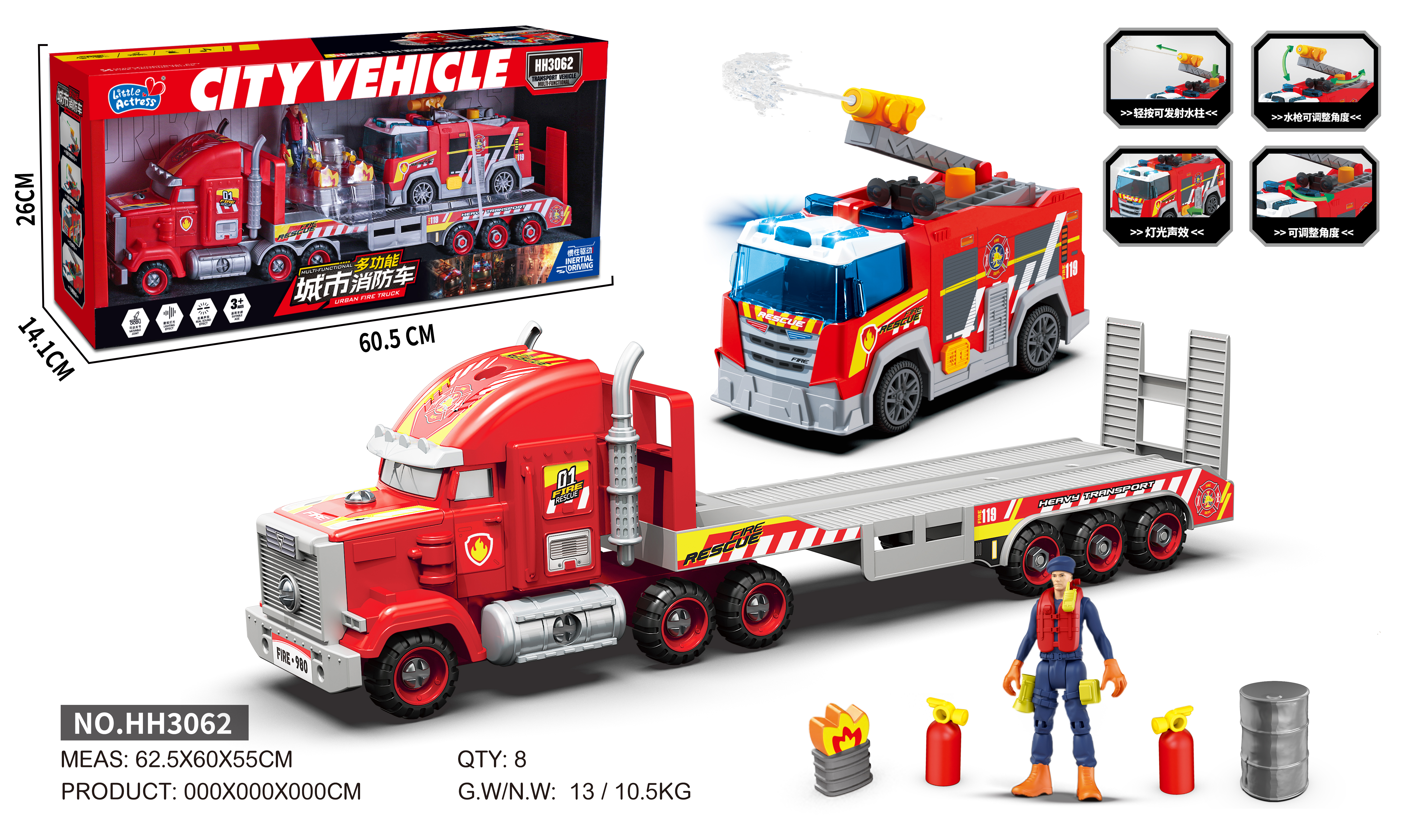 小演员声光音乐喷水儿童惯性消防车环卫处警察托运车玩具男孩礼物