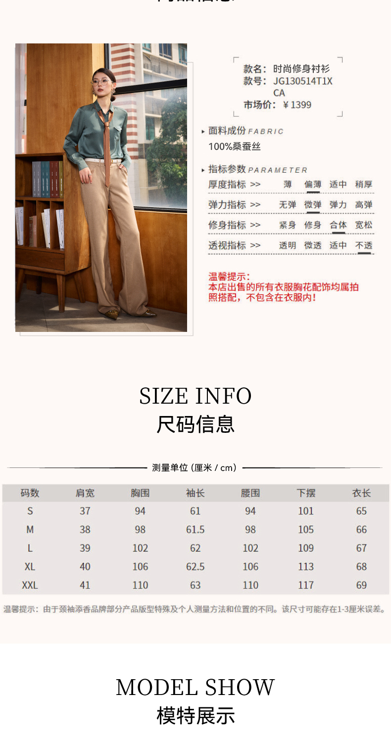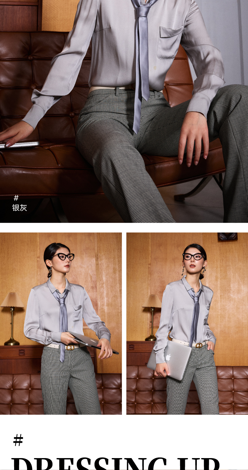 “烟雨墨”JG130514T1XC 重磅真丝衬衫 高级的光泽感和丝滑的质感(四季可穿)颈袖添香