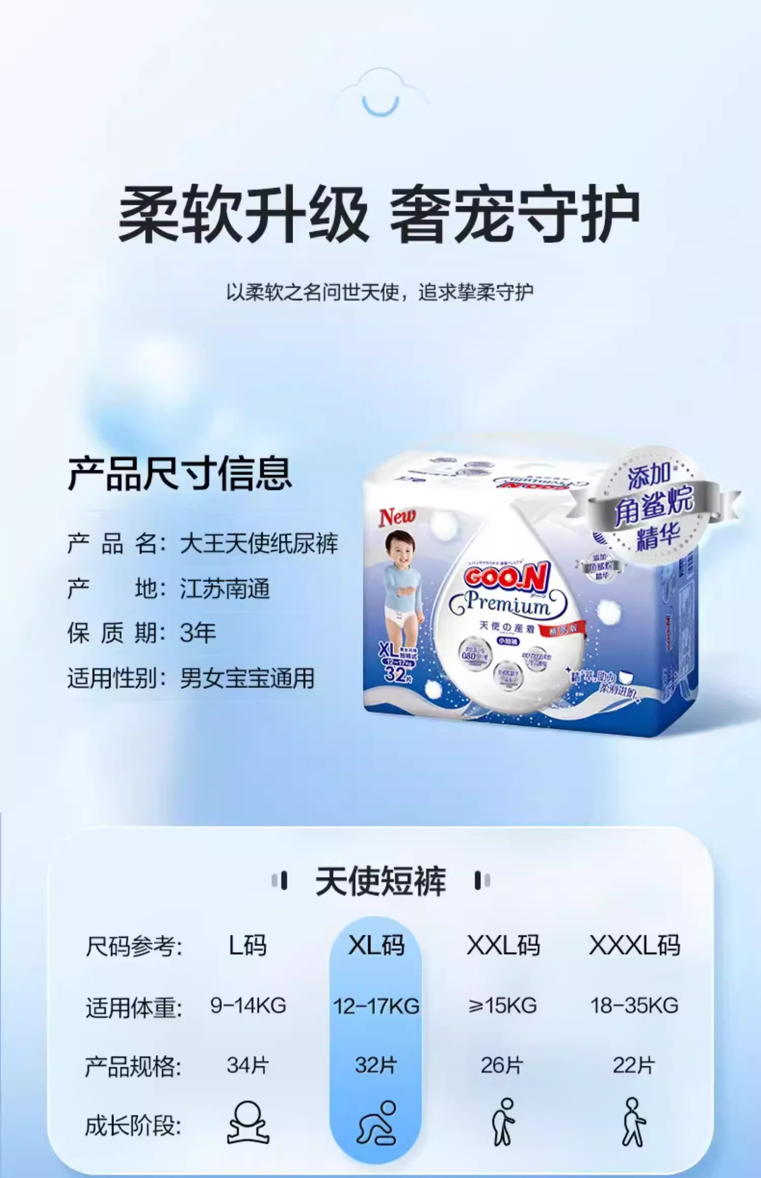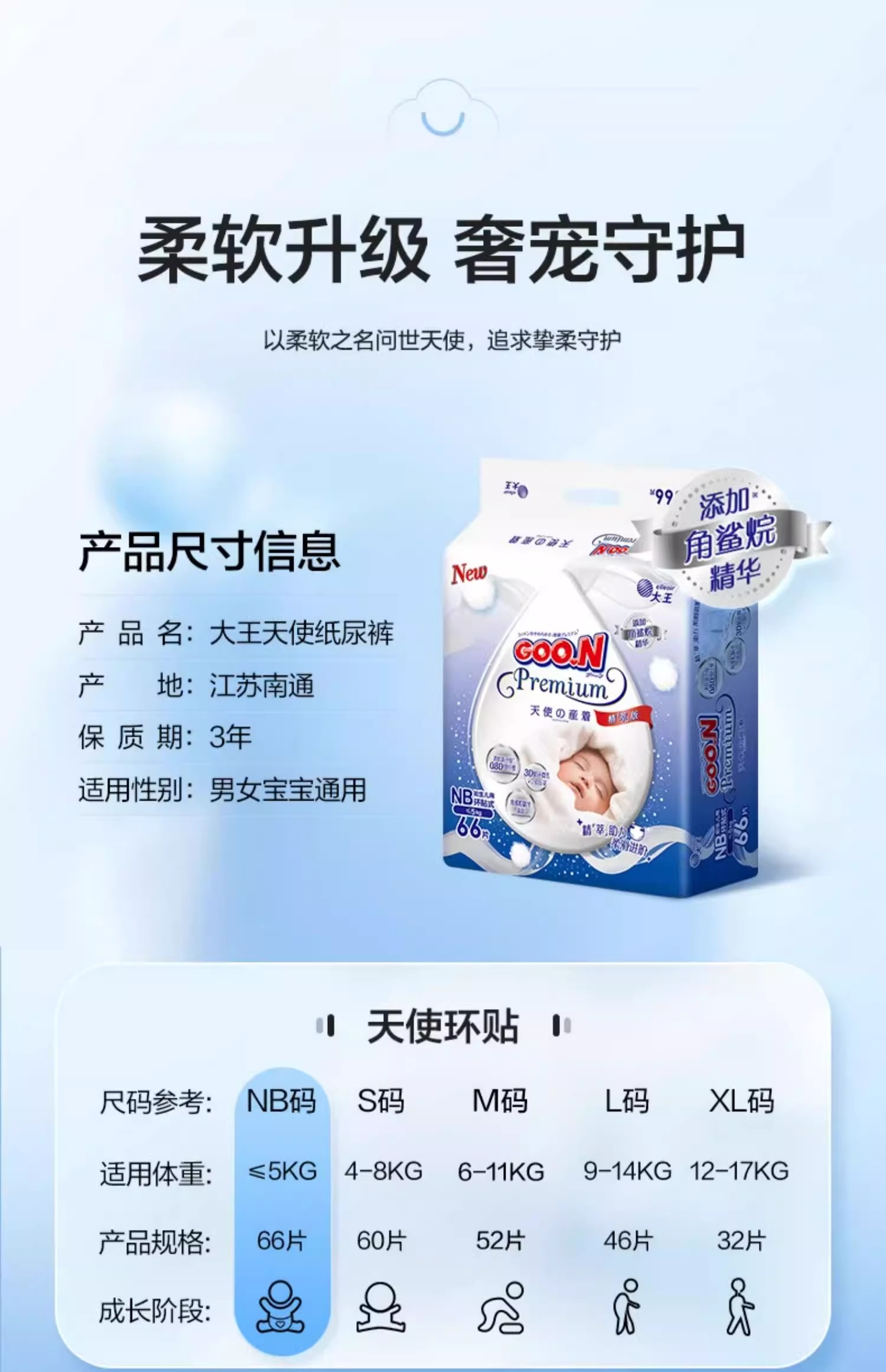 大王天使系列婴儿透气纸尿裤拉拉裤小内裤尿不湿