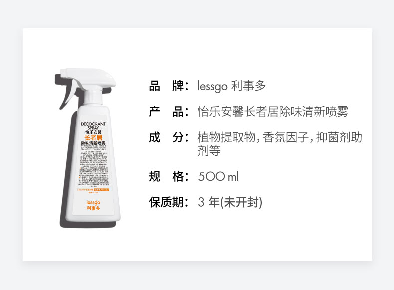 lessgo怡乐安馨长者居除味清新喷雾500ml