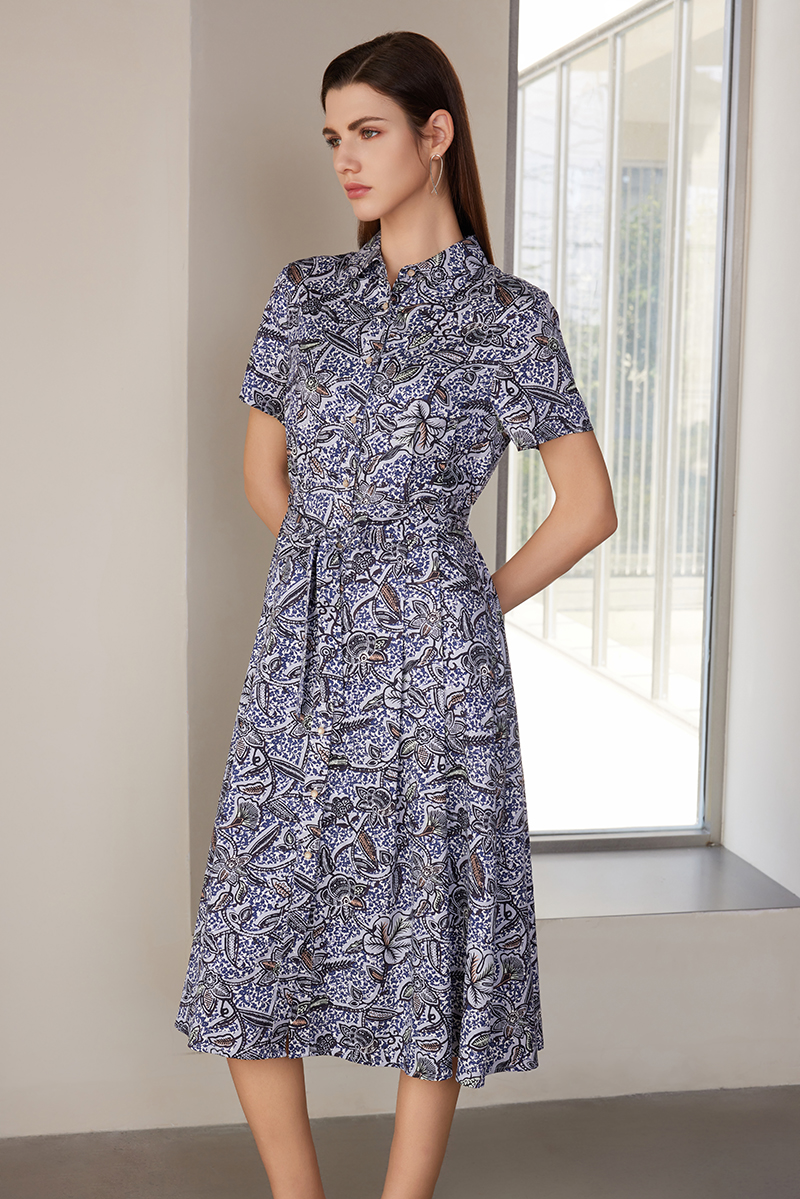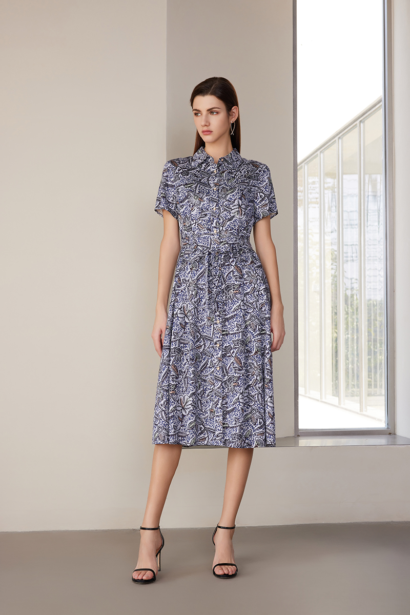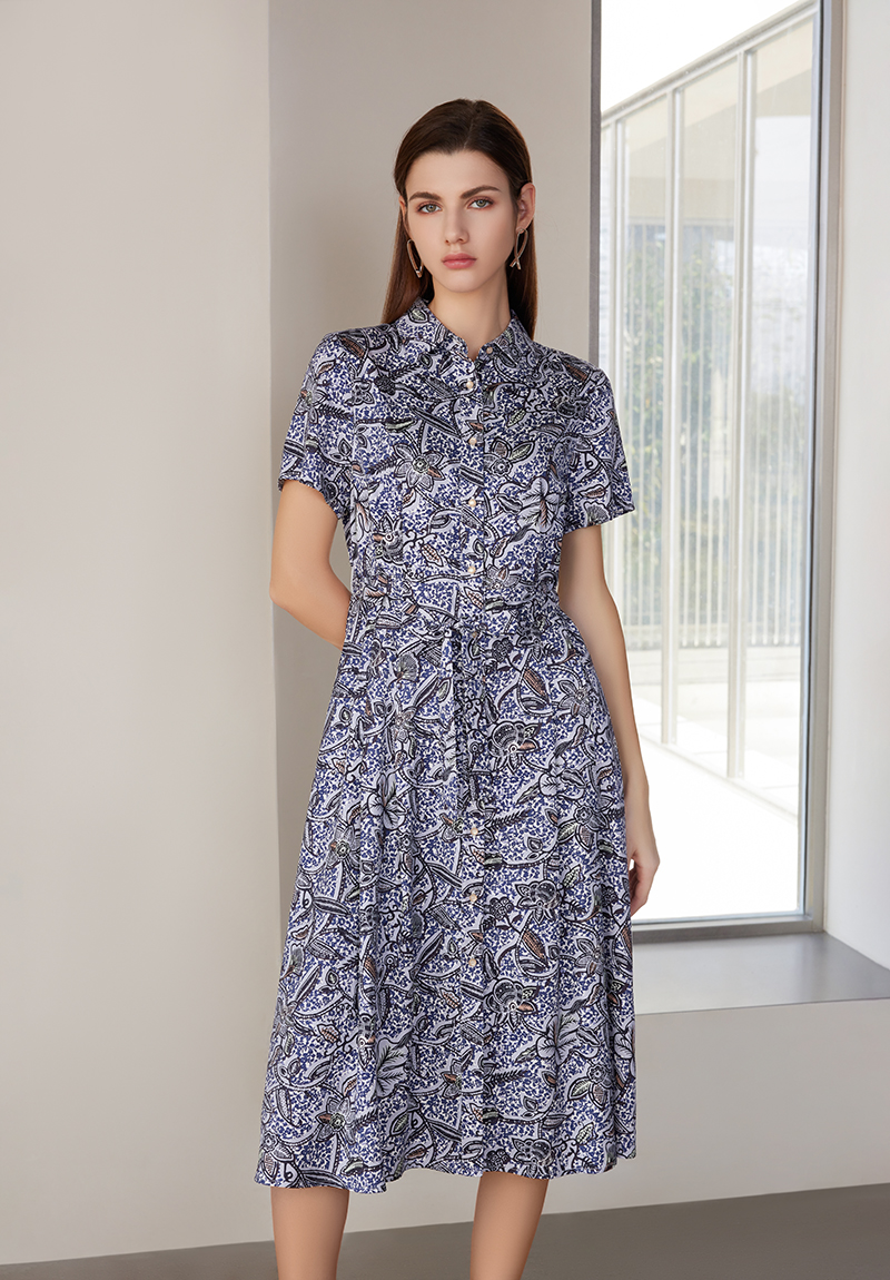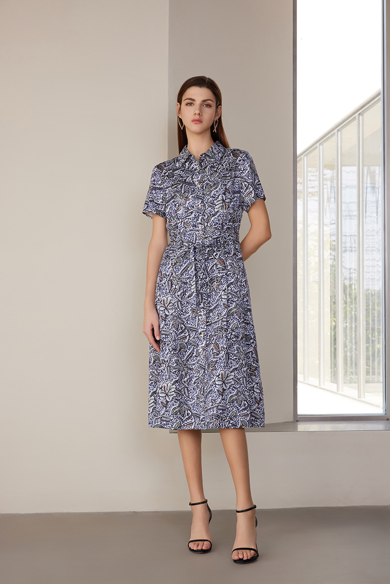 【衬衫款真丝连衣裙】24年春夏新品女士100%桑蚕丝中长款连衣裙
