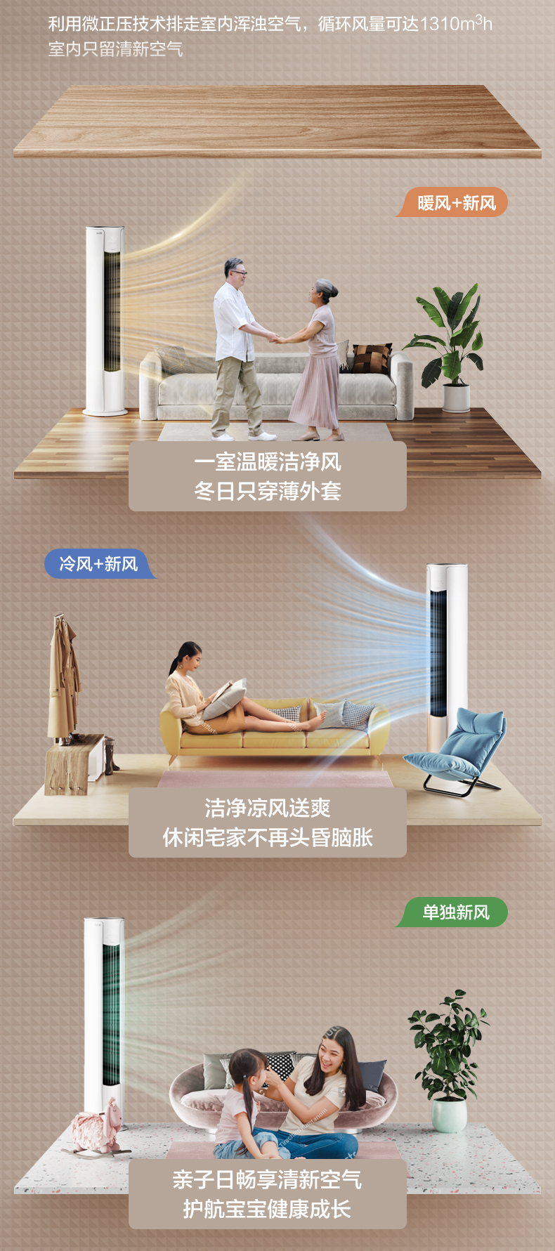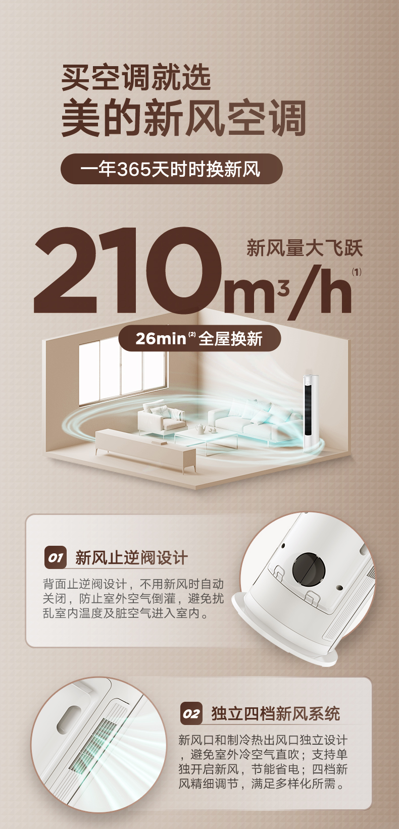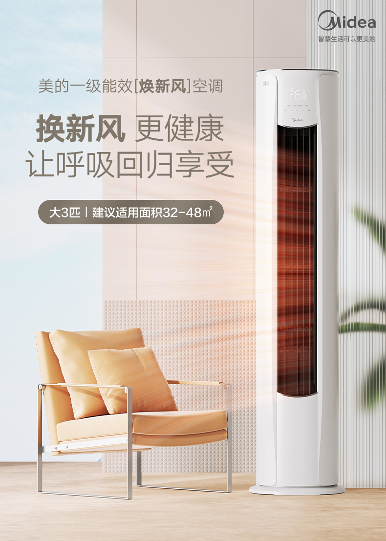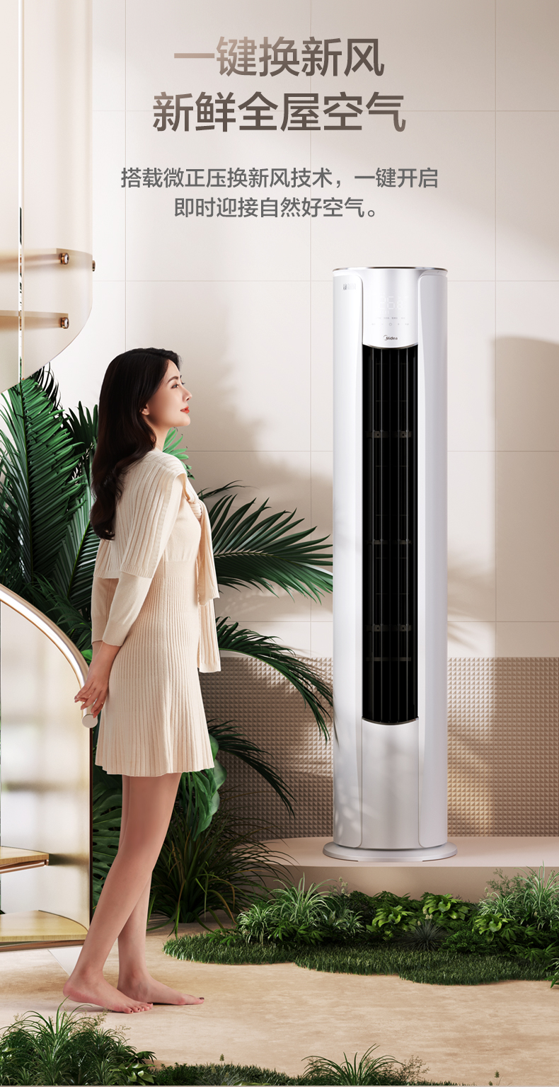 美的(Midea)新风空调3匹焕新风 新一级智能家电变频冷暖新风空调客厅圆柱立式柜 KFR-72LW/N8MKA1A