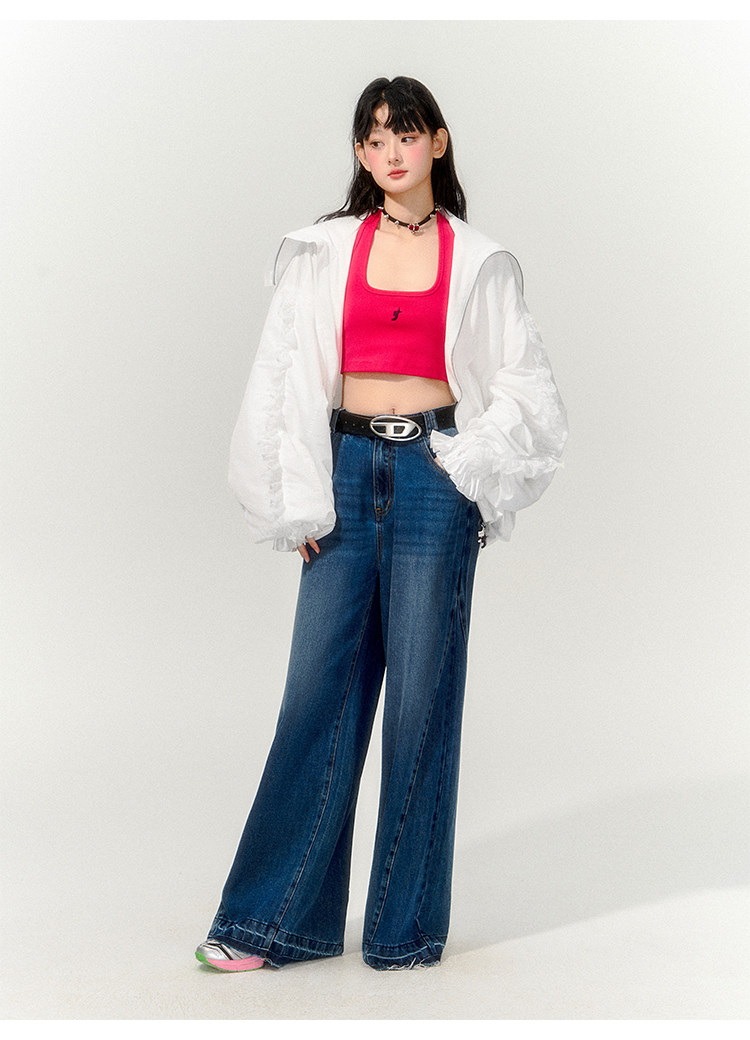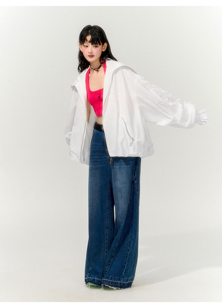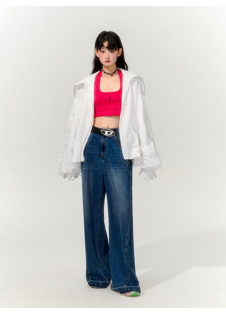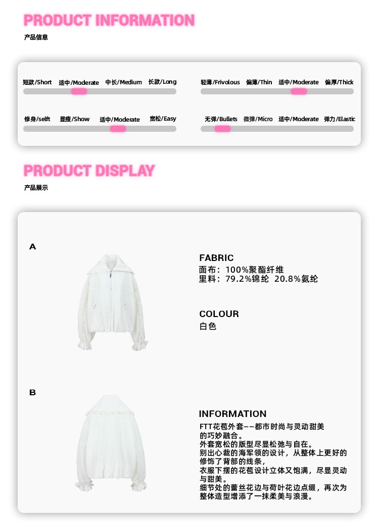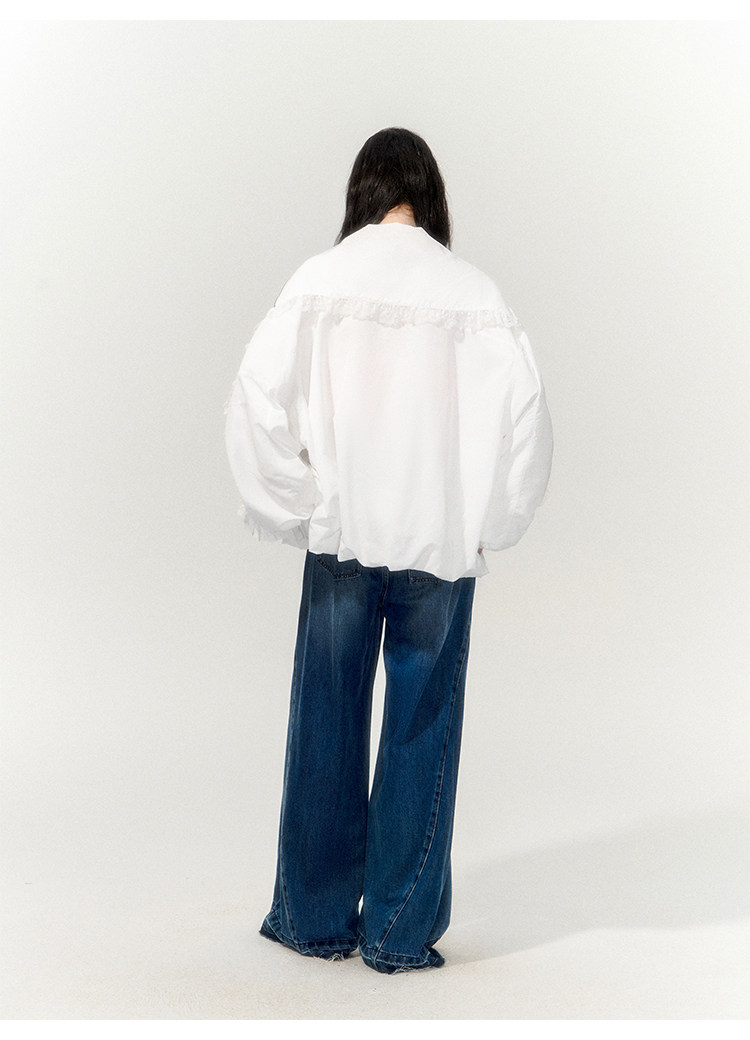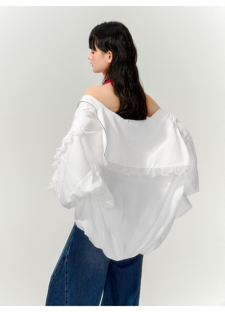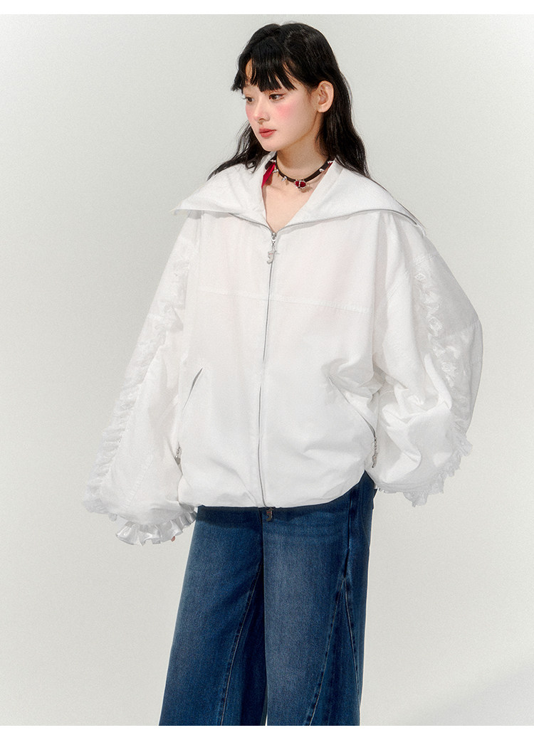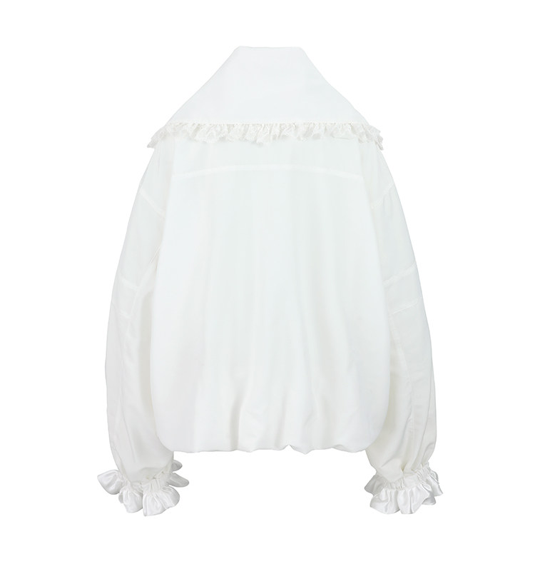 FTT FlyTheTruth『甜心舰长』 韩系白色荷叶边外套女秋季百搭夹克