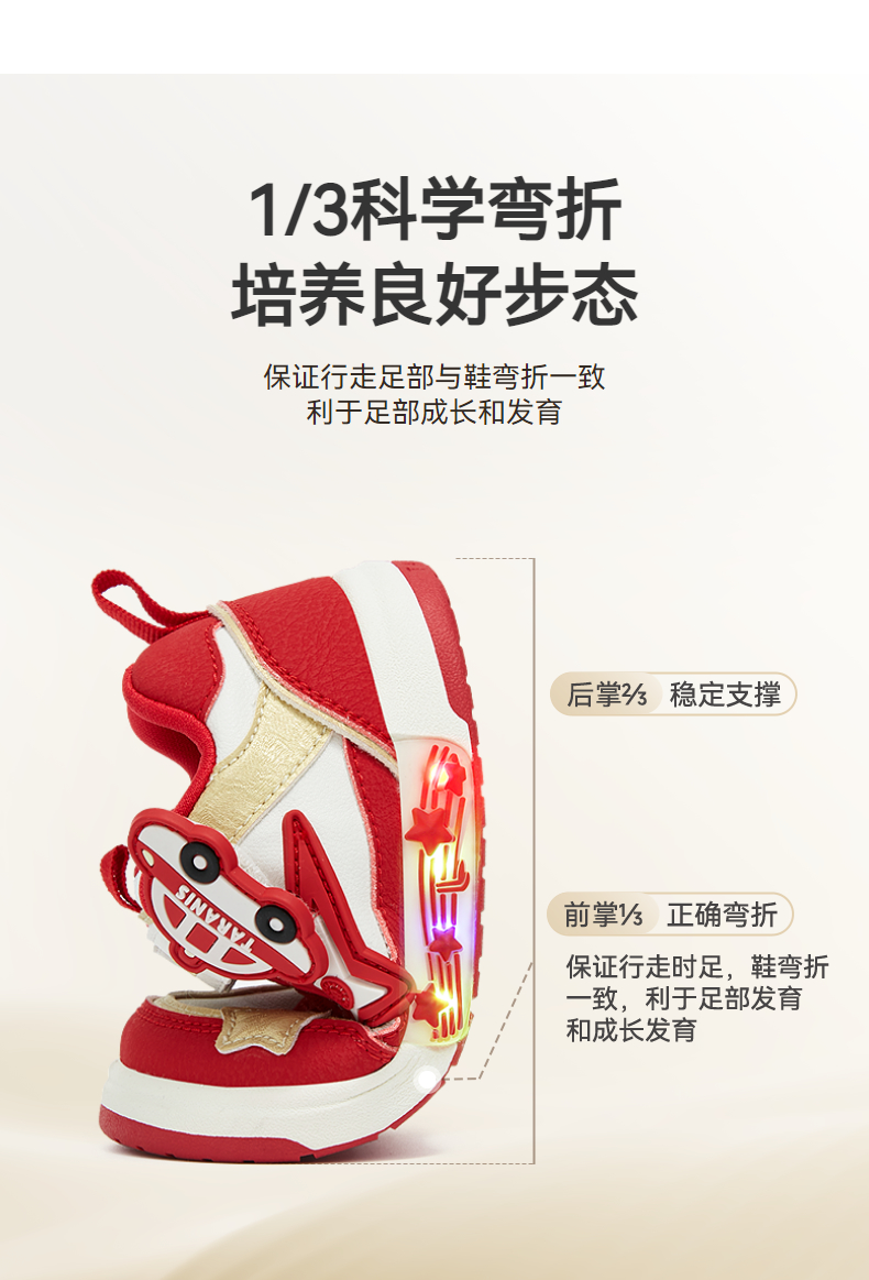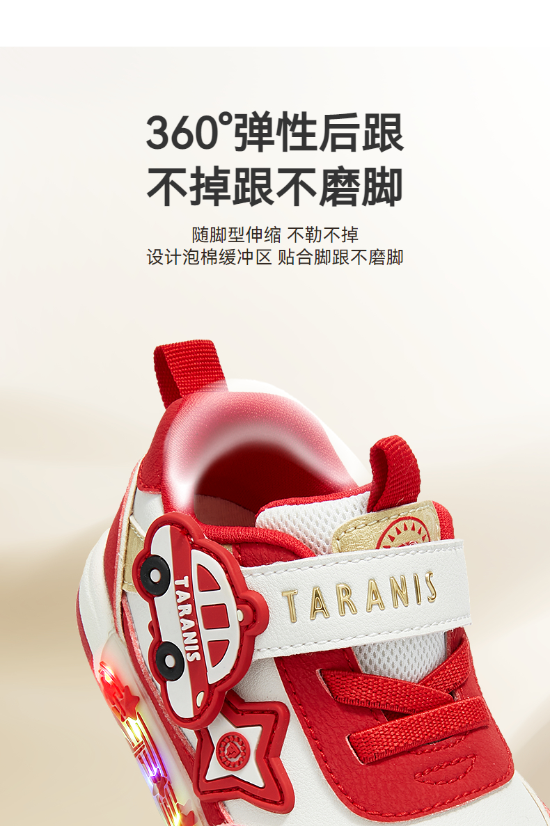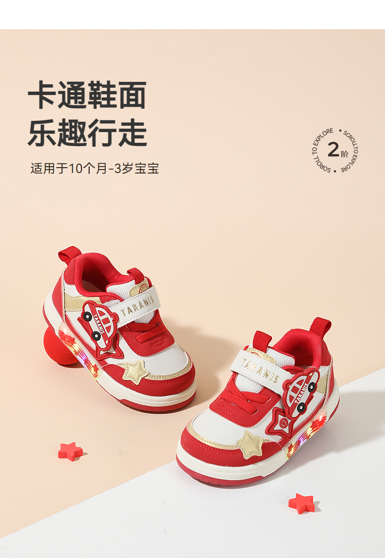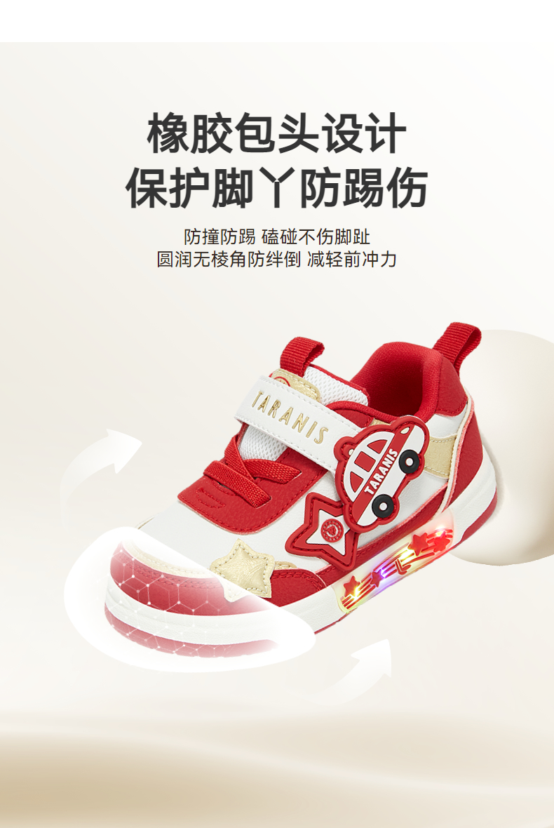 泰兰尼斯秋季新款童鞋学步鞋男宝宝防滑软底闪灯鞋女童板鞋机能鞋 T02T5C6436