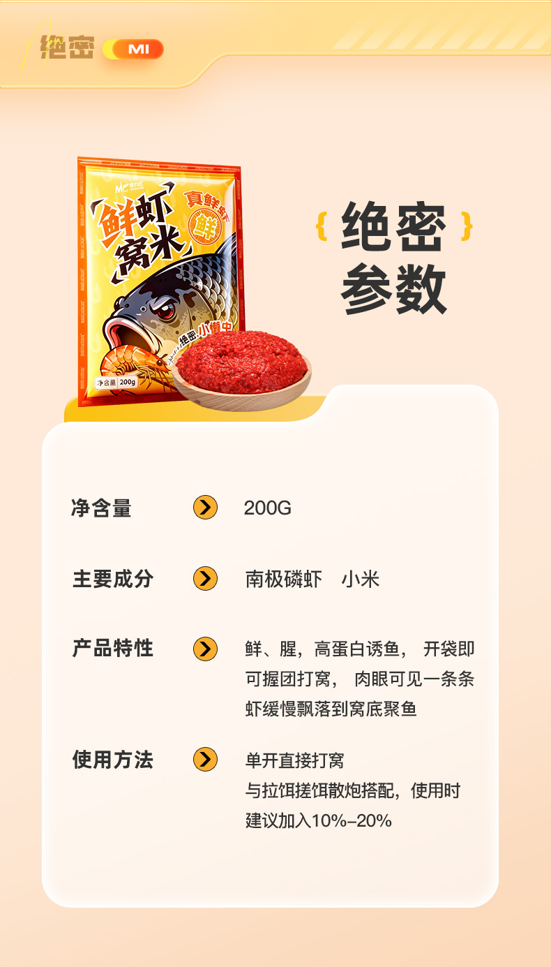 【新品 鲜虾窝米】佳钓尼新款绝密小懒虫鲜虾窝米鲫鱼鲤鲤底窝打窝钓鱼窝料饵料鱼饵