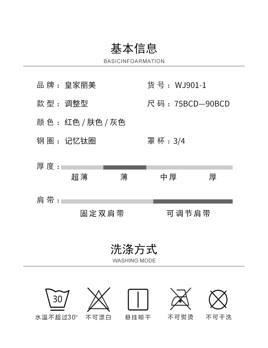 【秒杀品不退不换】皇家丽美薄杯记忆钛圈收副乳调整型文胸大胸显小内衣WJ901-1