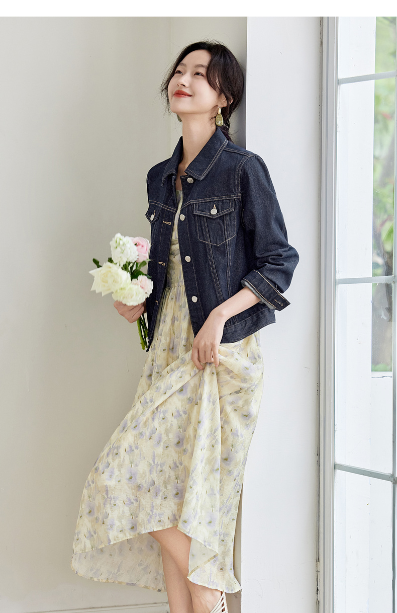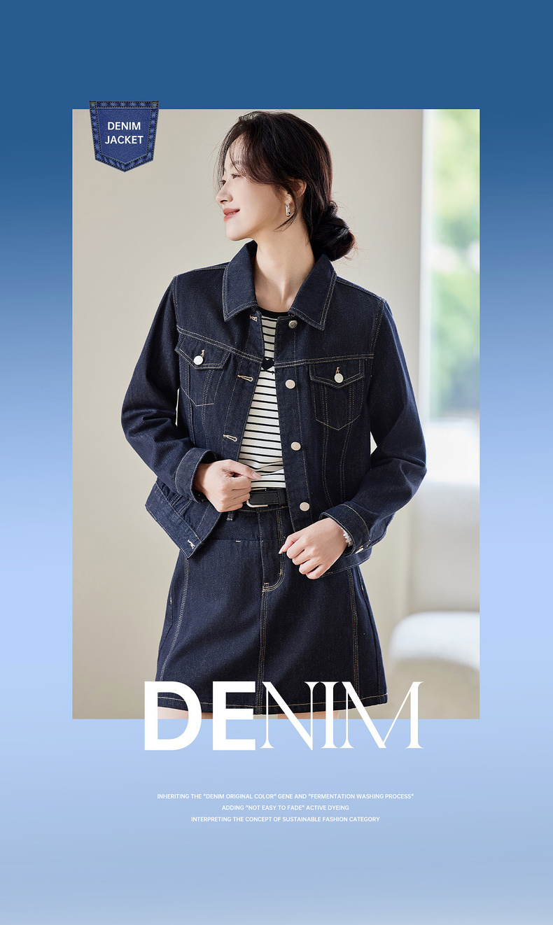 【内购】【不易褪色】活力丹宁都市通勤翻领撞色明线分割设计长袖牛仔外套-W53WD1701