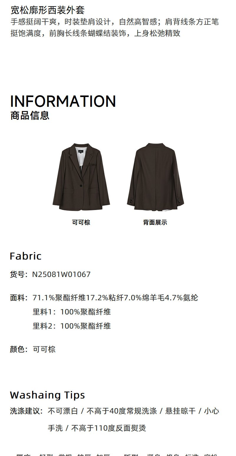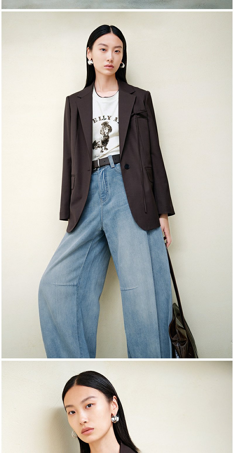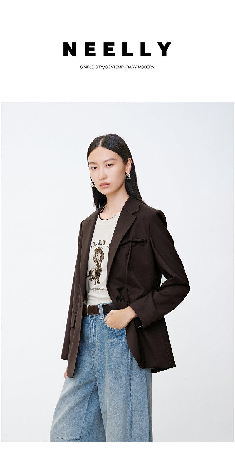 NEELLY纳俪商场同款秋季新款简约通勤气质西装外套女宽松廓形西服N25081W01067