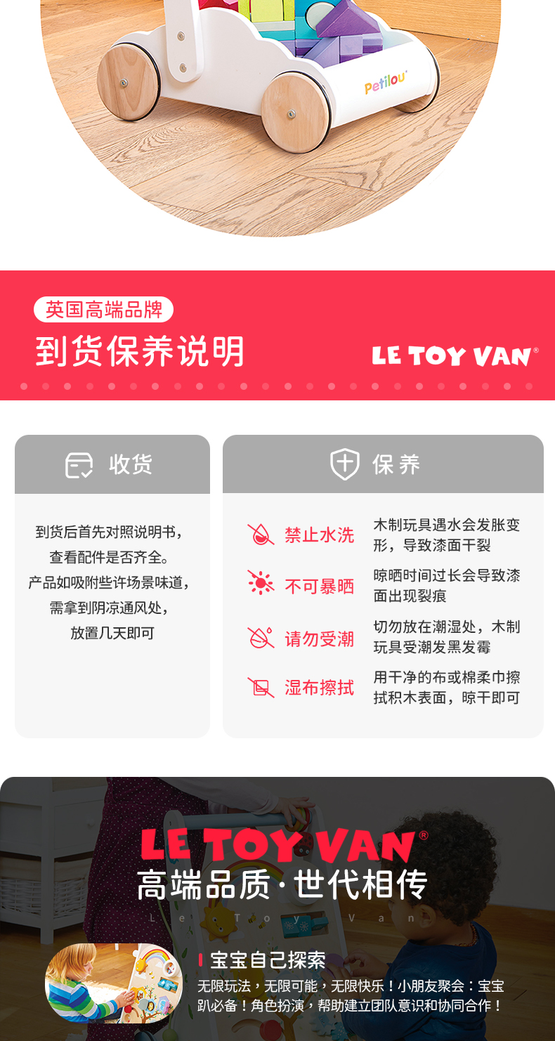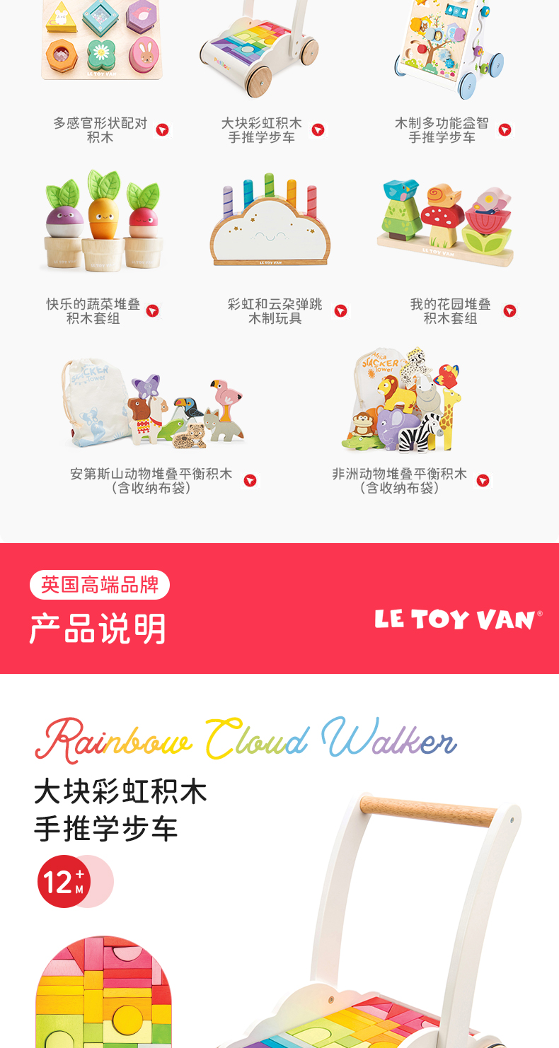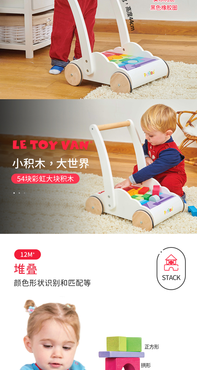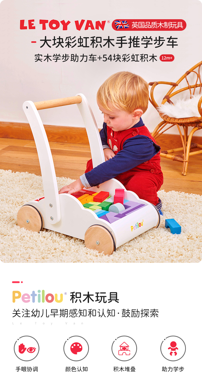 LE TOY VAN品牌 大块彩虹积木手推学步车
