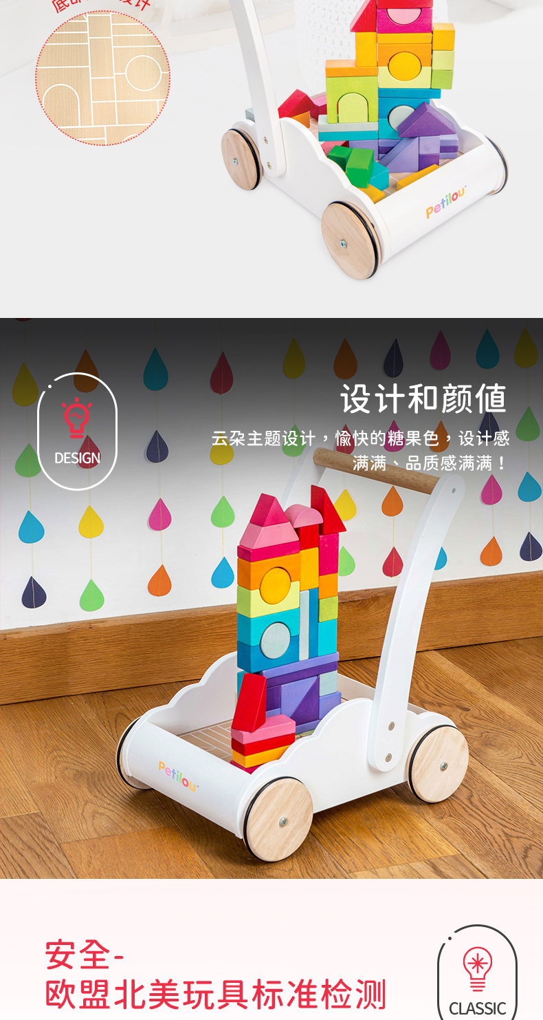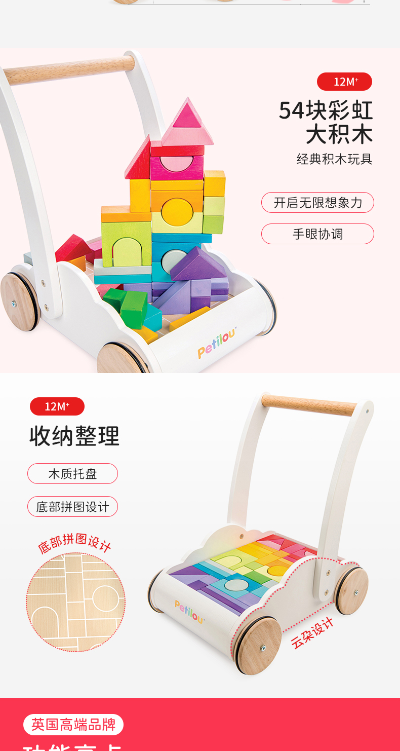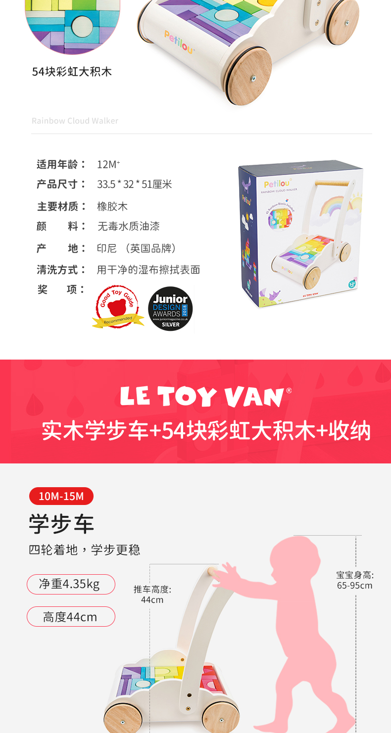 LE TOY VAN品牌 大块彩虹积木手推学步车