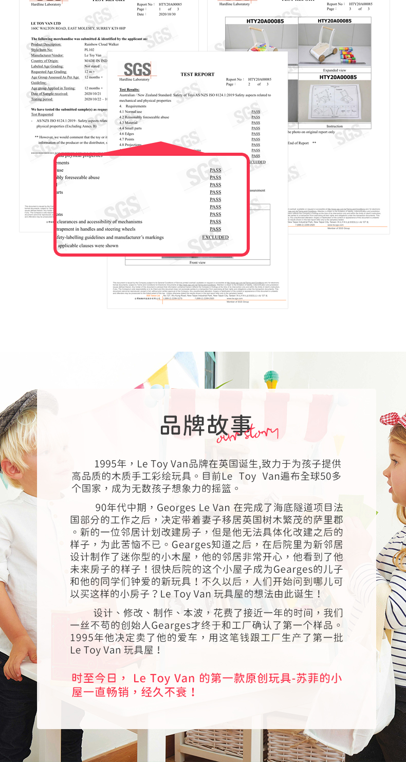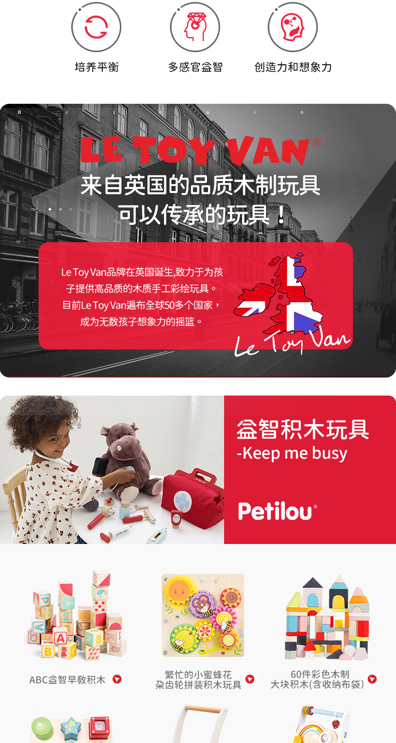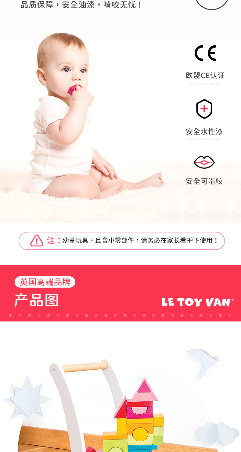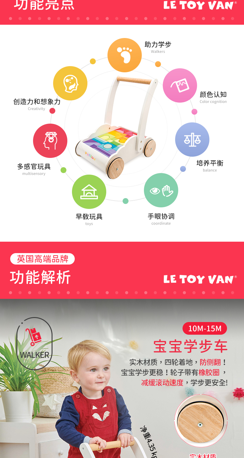 LE TOY VAN品牌 大块彩虹积木手推学步车