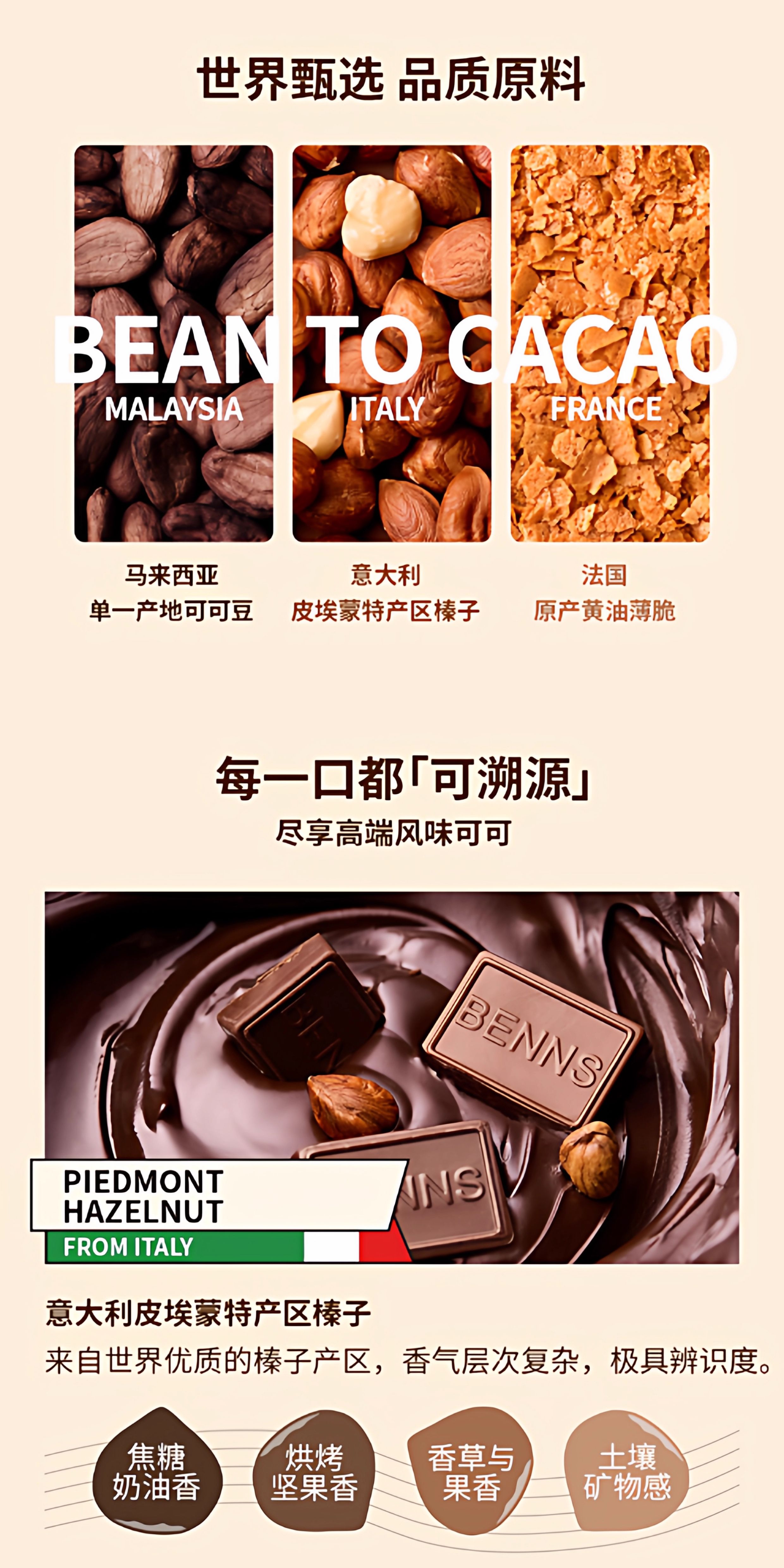 【新品上架】贝纳丝榛子黄油薄脆生巧克力制品(57%可可含量)/牛奶生巧克力制品(36%可可含量)世界味觉的三重凑 榛子+黄油薄脆+生巧克力 045395/045396