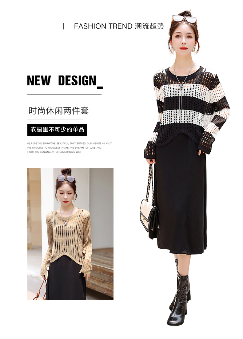 针织开衫时尚休闲,显瘦早秋穿搭套装裙HR-YF9518