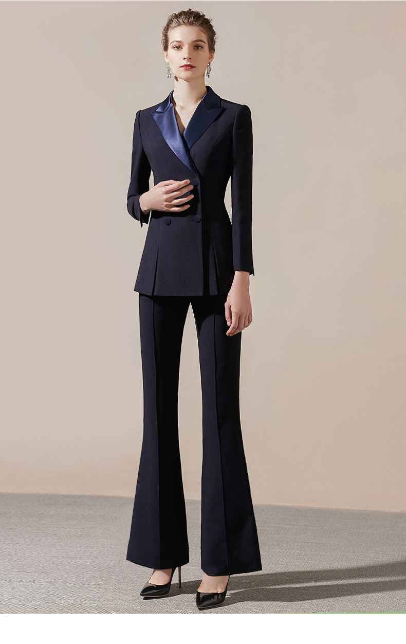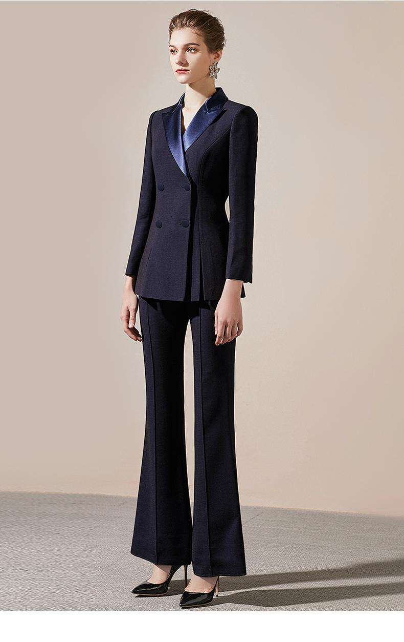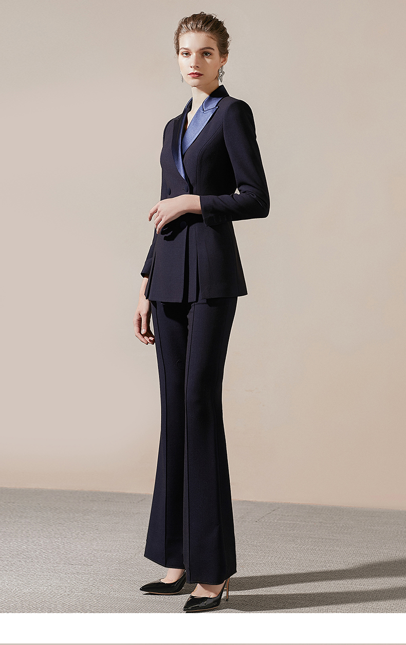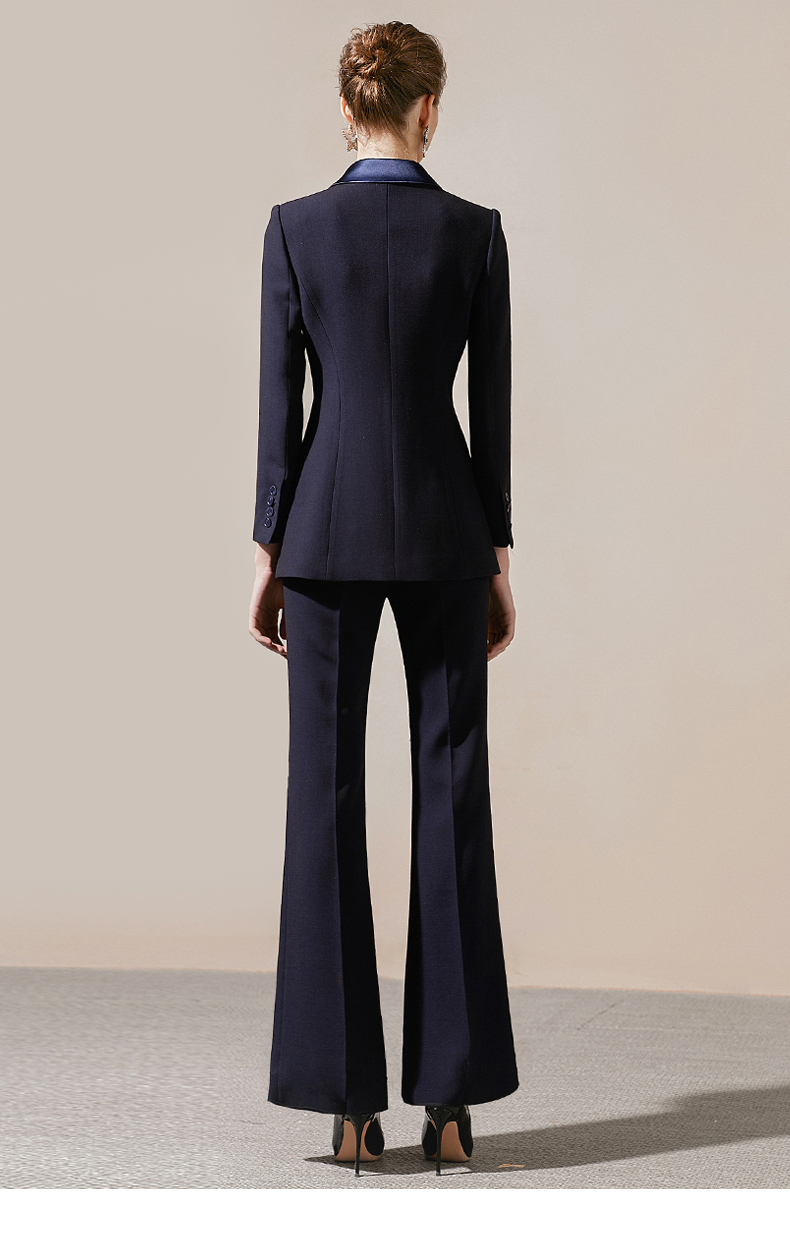 IWY/藏青色高端商务西装领西服套装女时尚修身微喇裤气质女神职业正装211027C1+P3