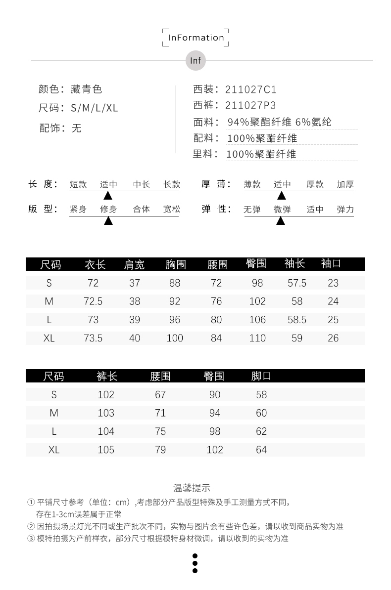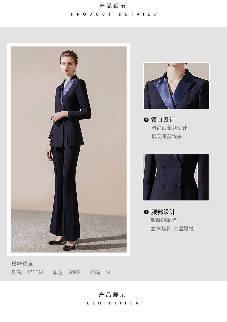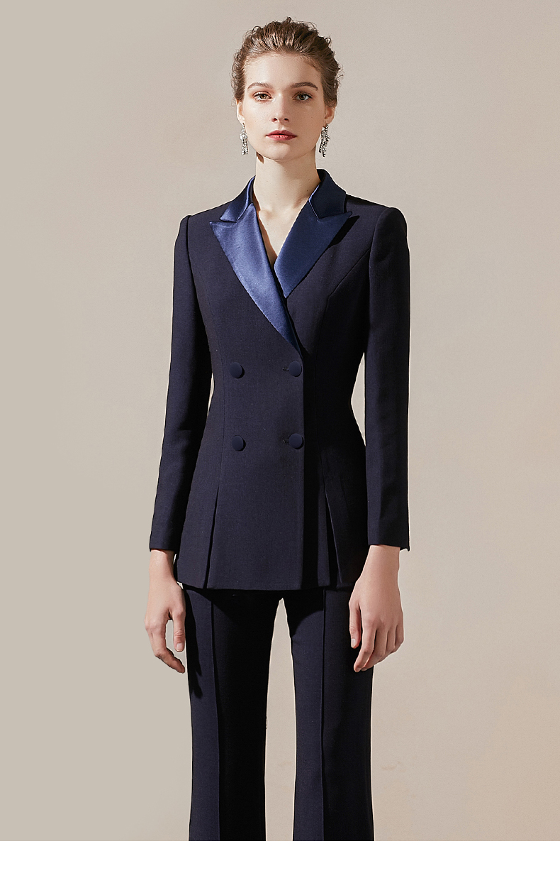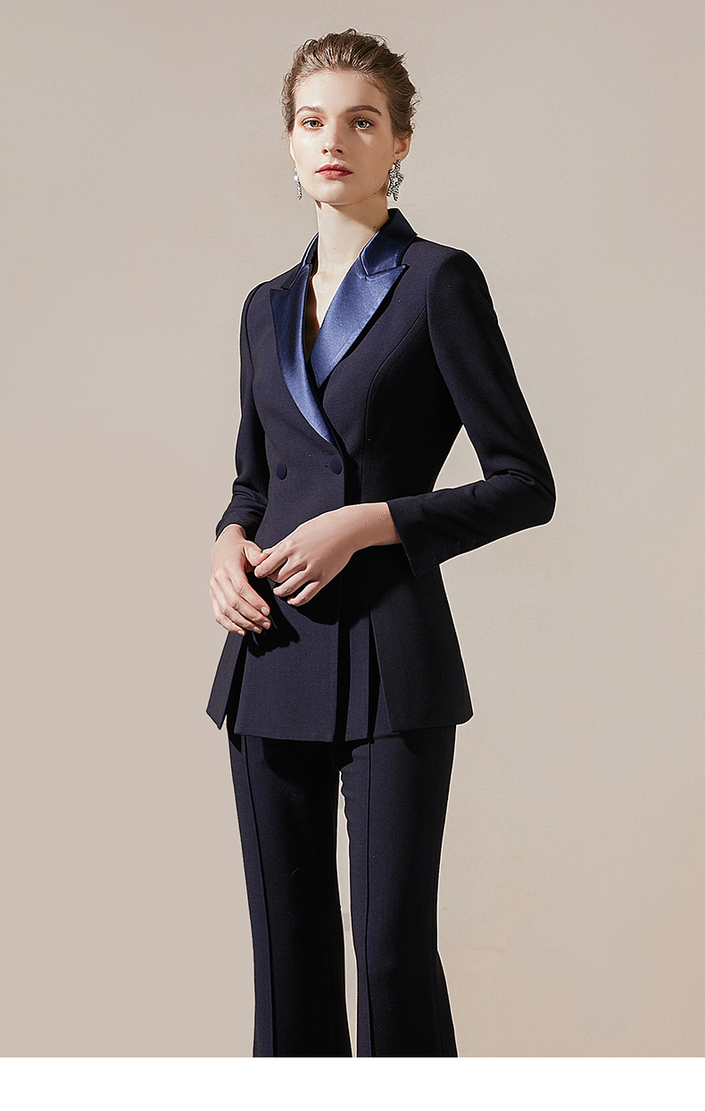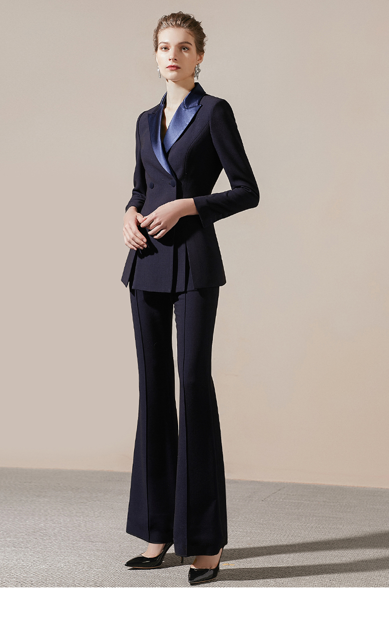 IWY/藏青色高端商务西装领西服套装女时尚修身微喇裤气质女神职业正装211027C1+P3