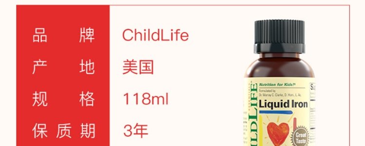 【保税】美国 童年Life 补铁营养液 118ml