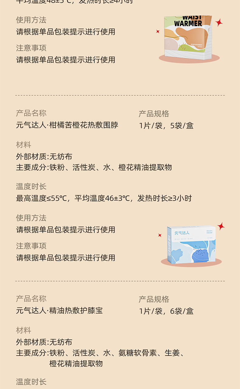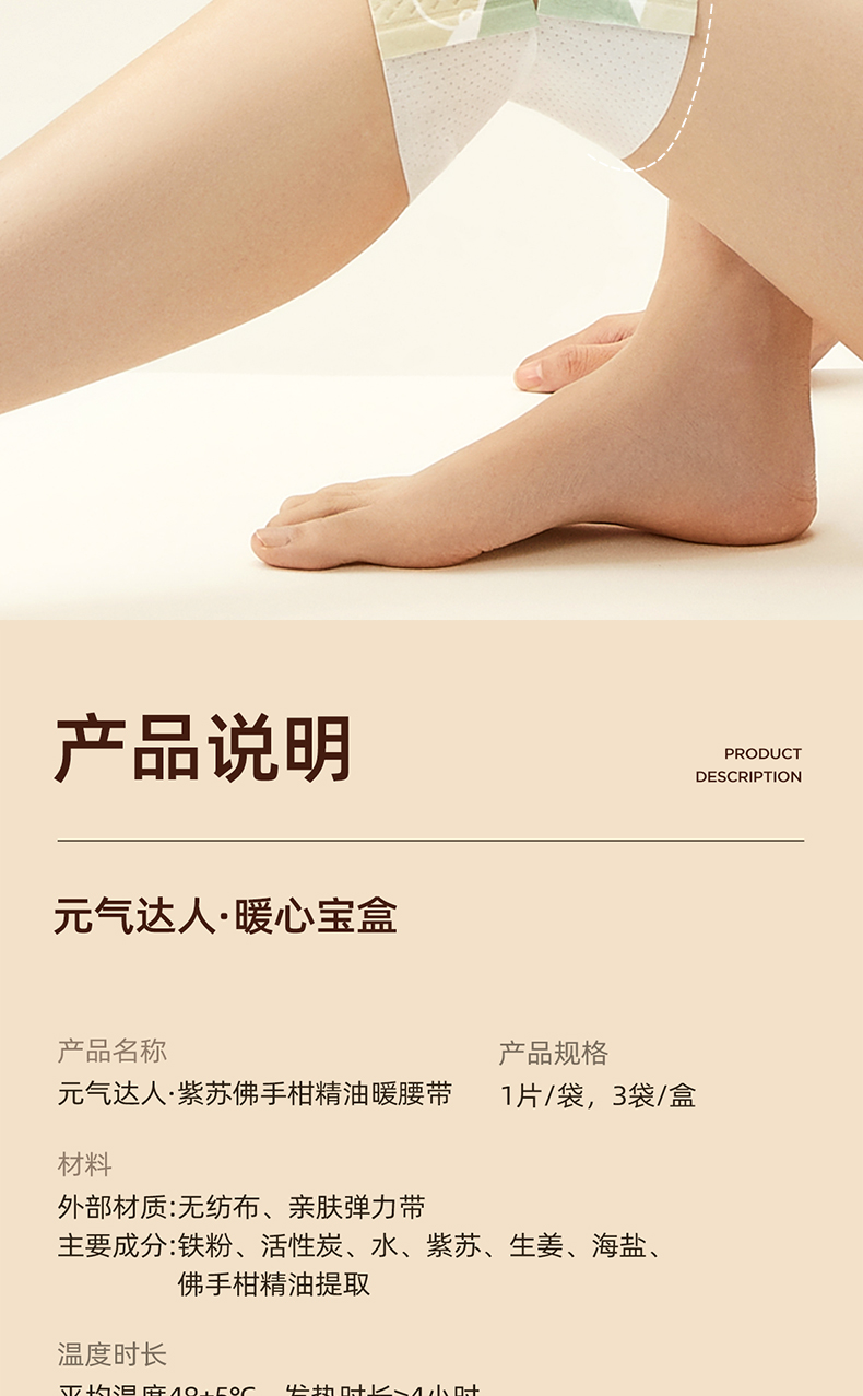 【三九活动中】元气达人暖腰带紫苏佛手柑/蕲艾红花蒸汽热敷暖腰贴温灸贴护腰发热大姨妈热敷神器