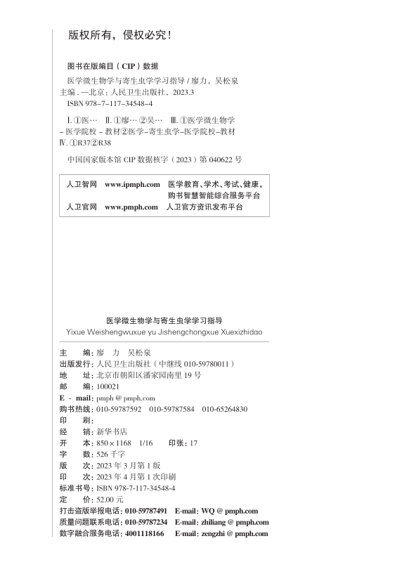 医学微生物学与寄生虫学学习指导 2023年3月配套教材 9787117345484