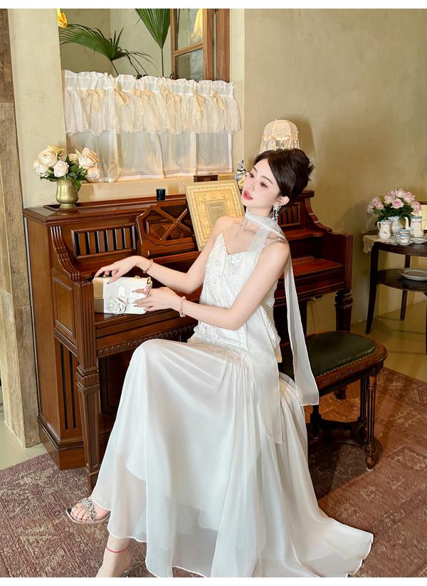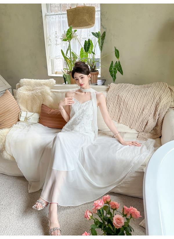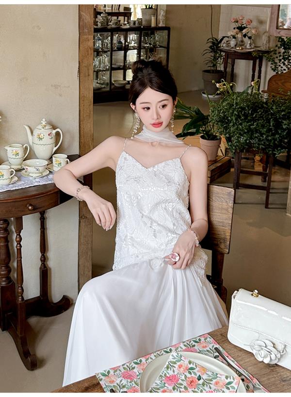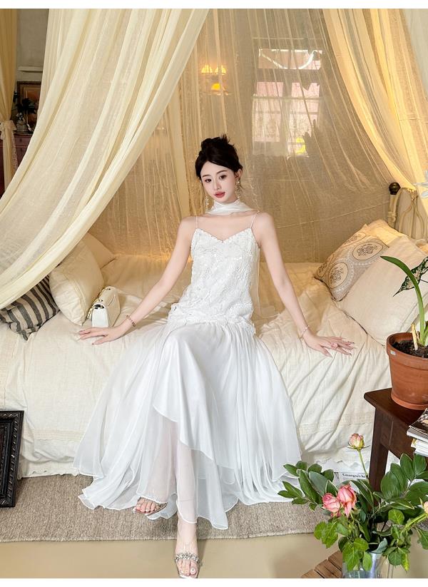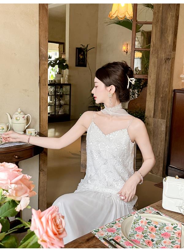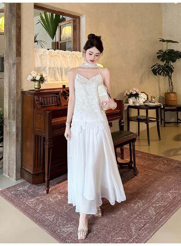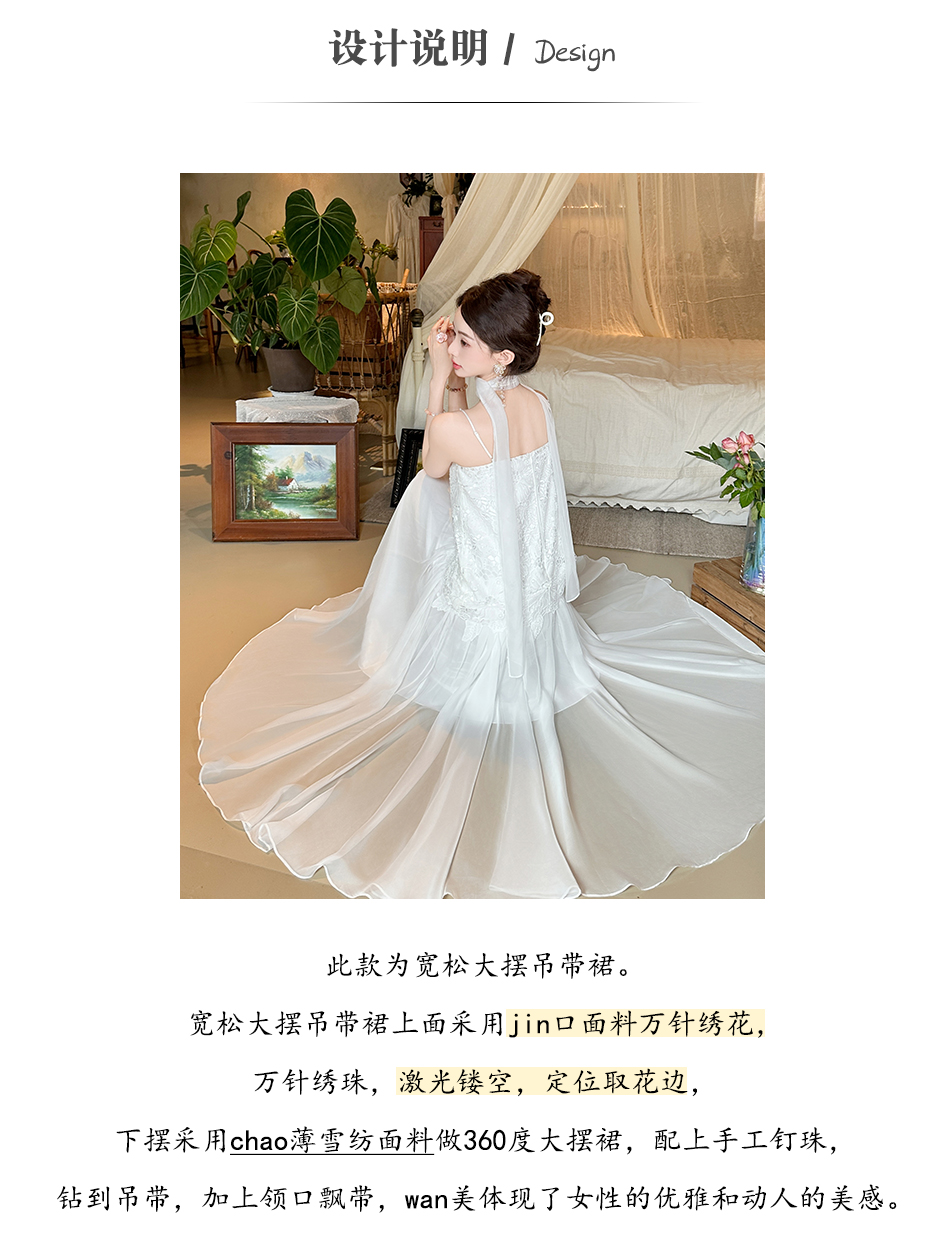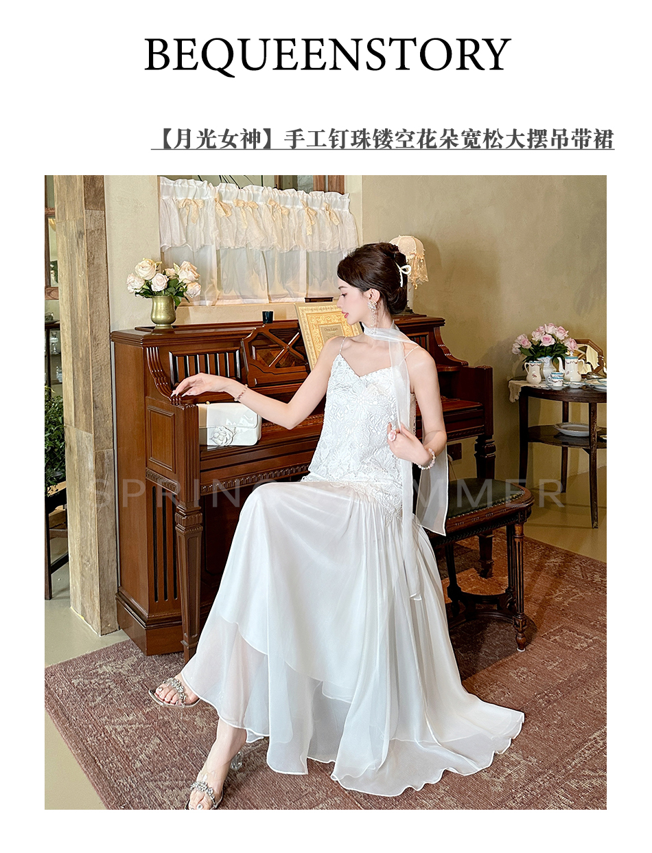 【大货捡漏,不退不换】 【月光女神】时尚优雅手工钉珠镂空花朵大摆欧若风吊带连衣裙