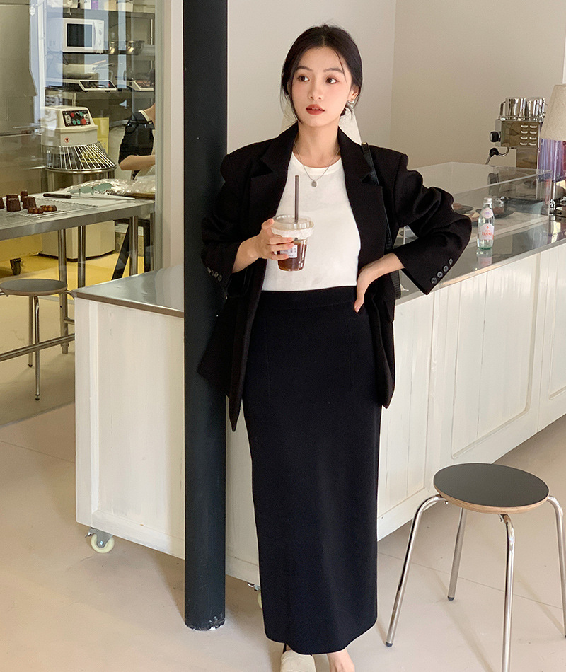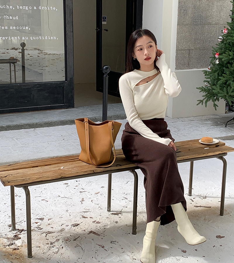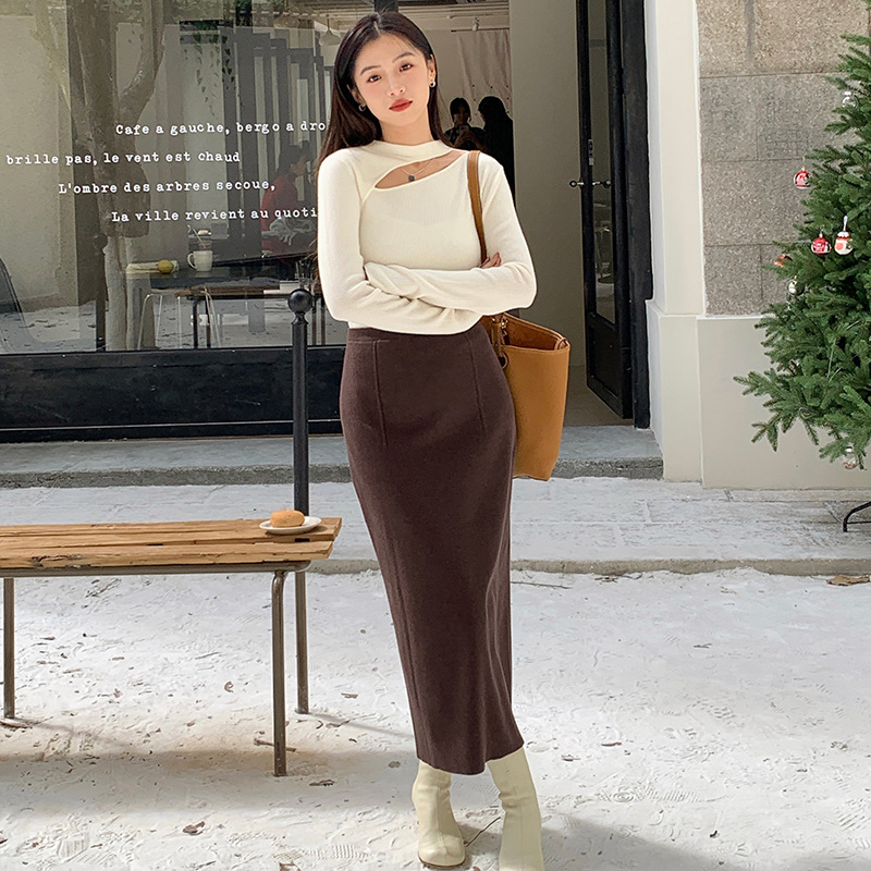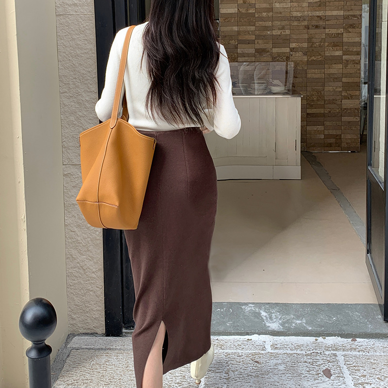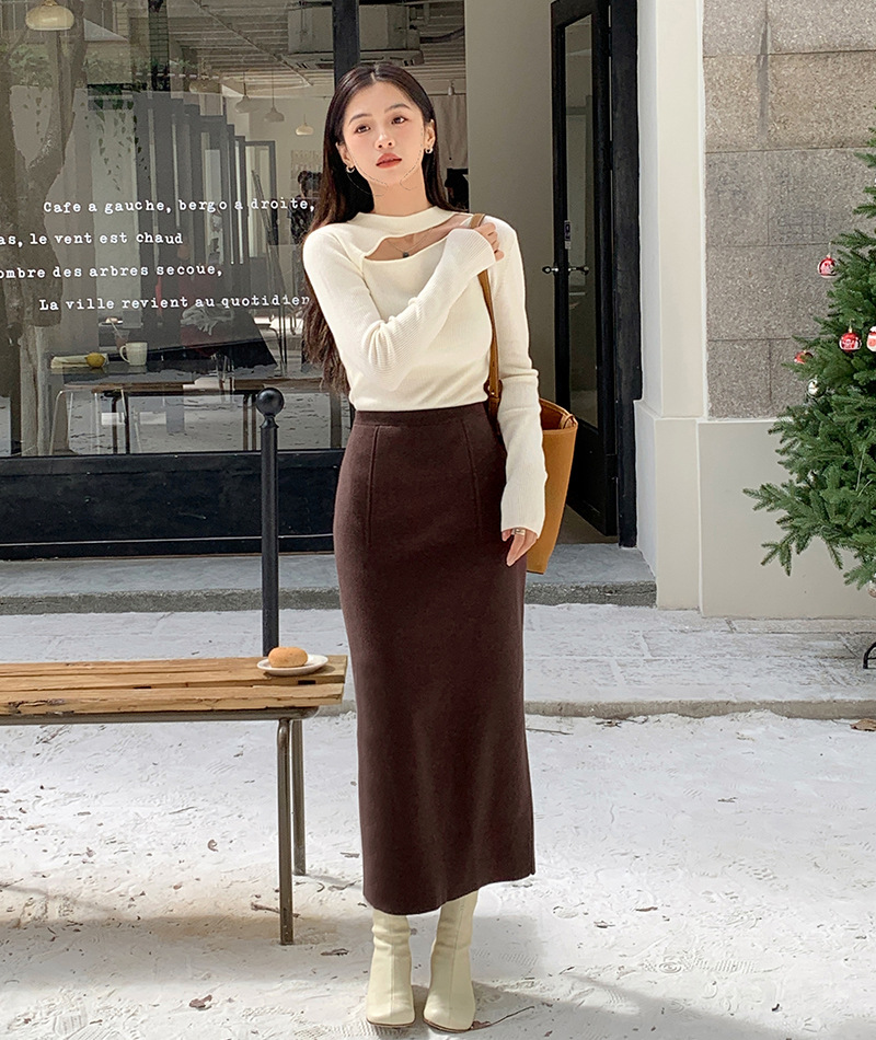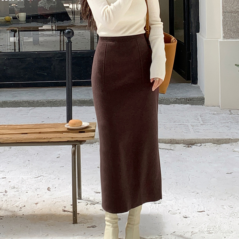 2025【早春保暖 开叉针织半身裙】高腰显瘦 修身中长款 A字包臀裙