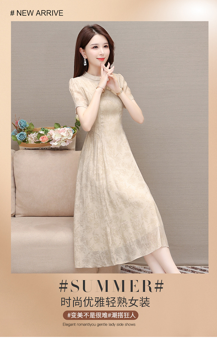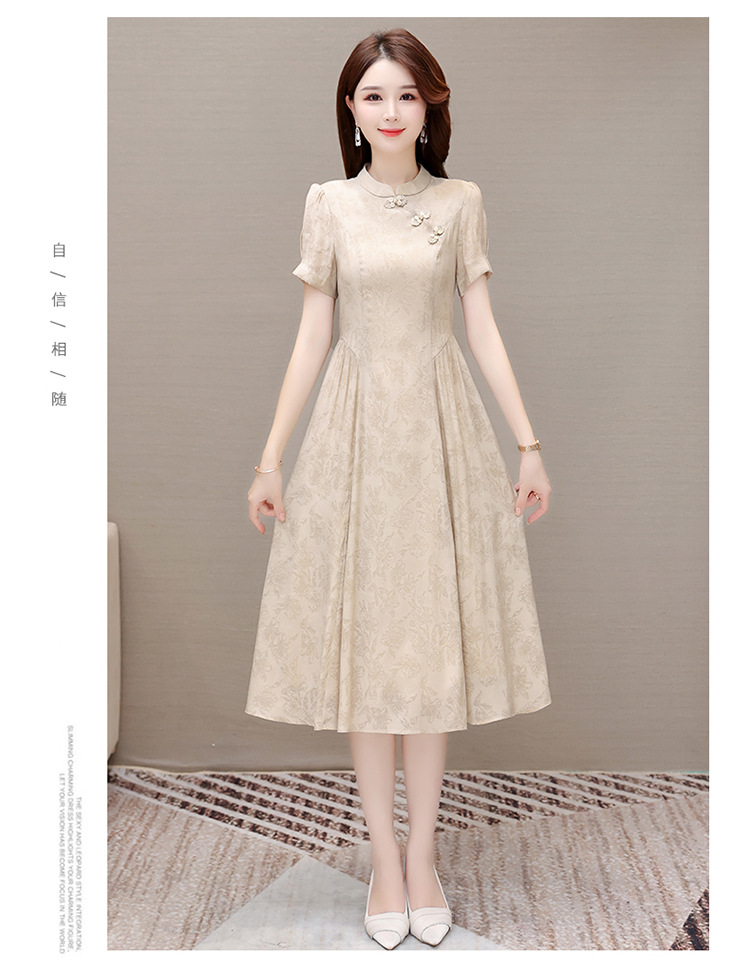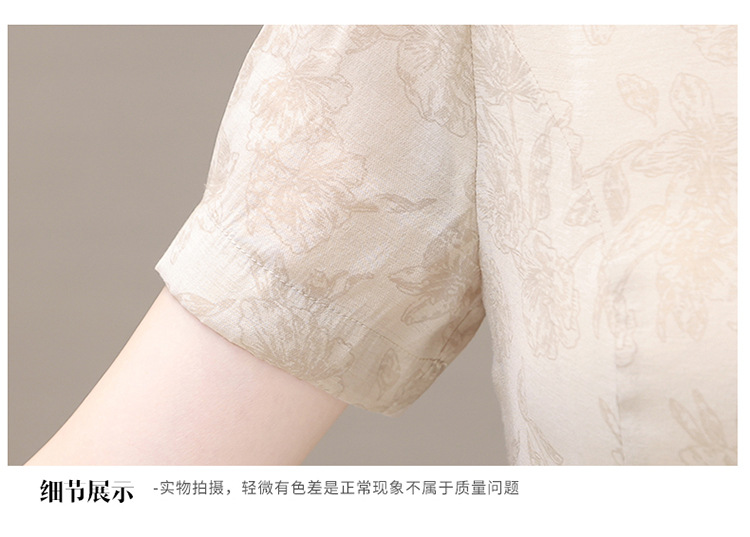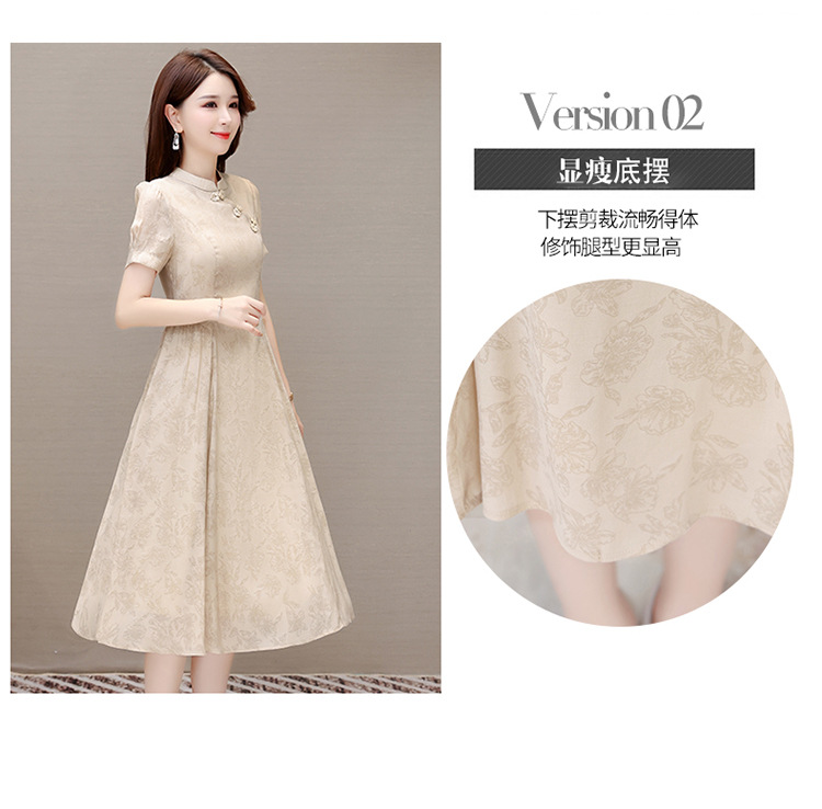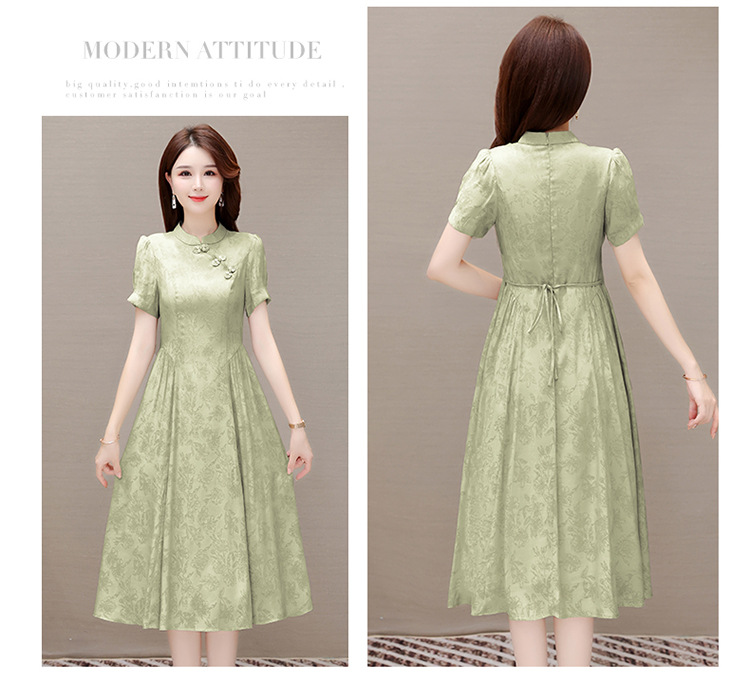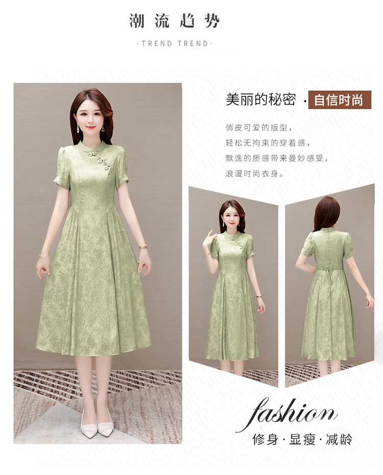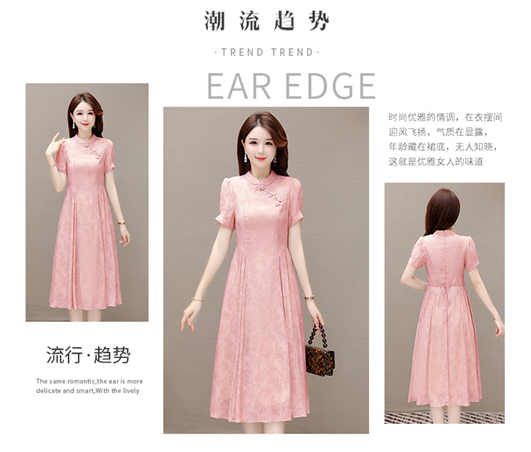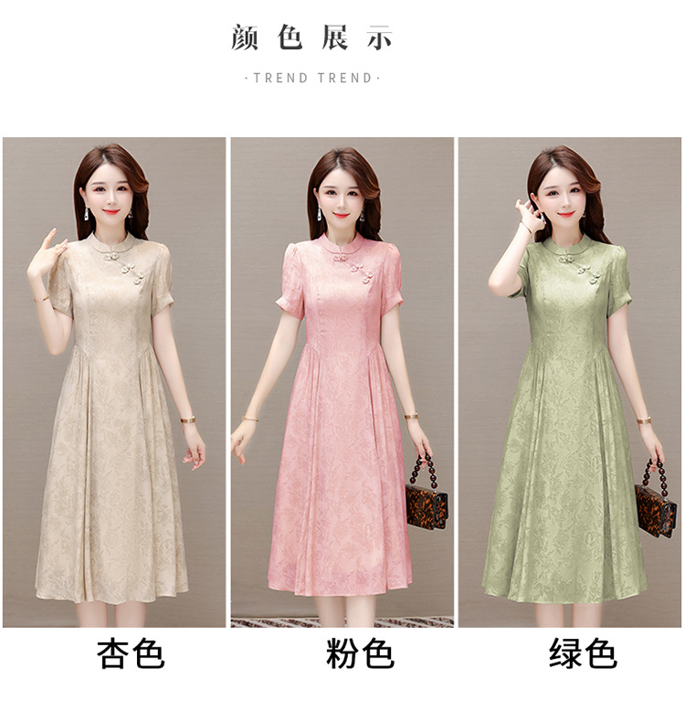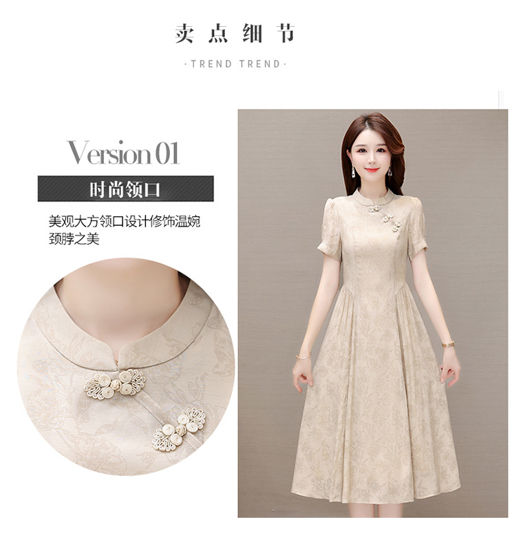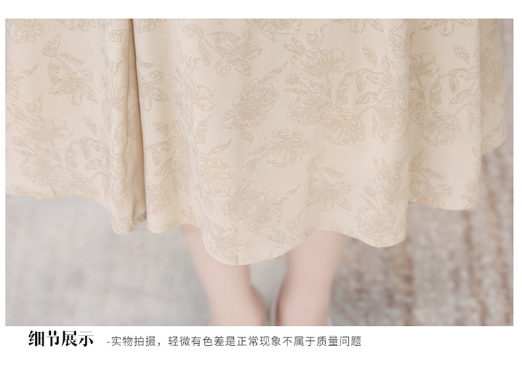 复古连衣裙印花裙中长款妈妈装短袖旗袍裙高腰A字裙QYM-YX-LC23051-Y